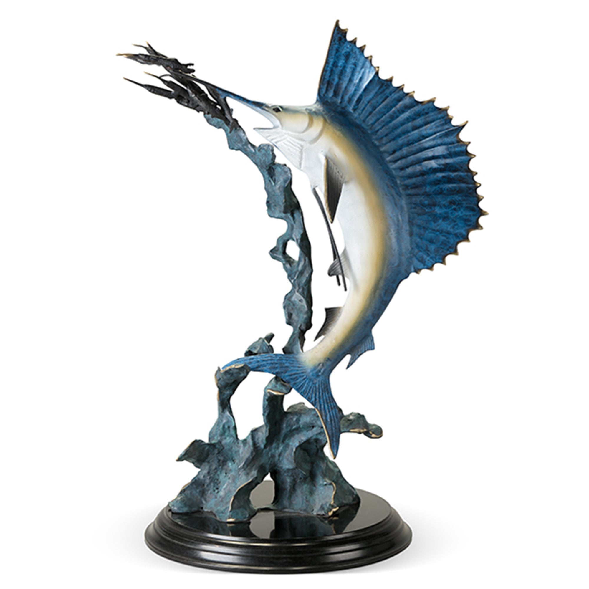 - Decorative sailfish sculpture with dynamic, flowing form