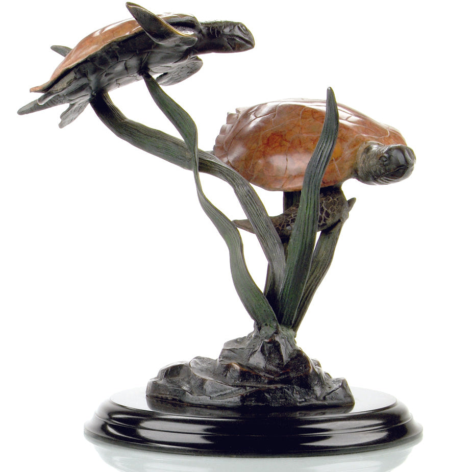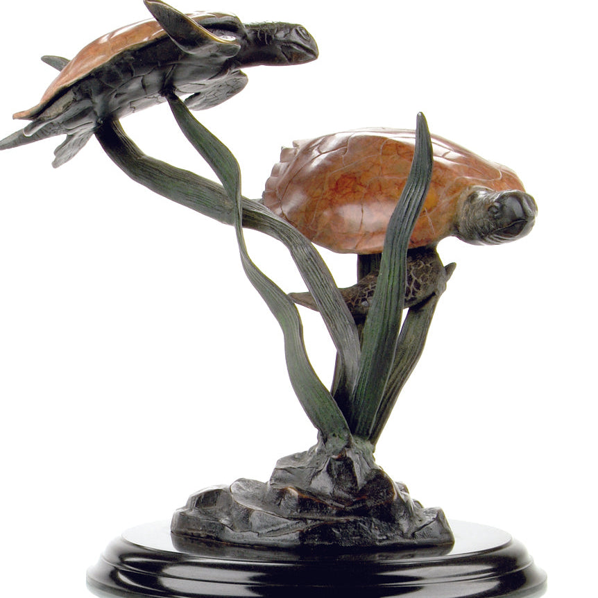 - Decorative double turtle sculpture with sea grass–inspired movement