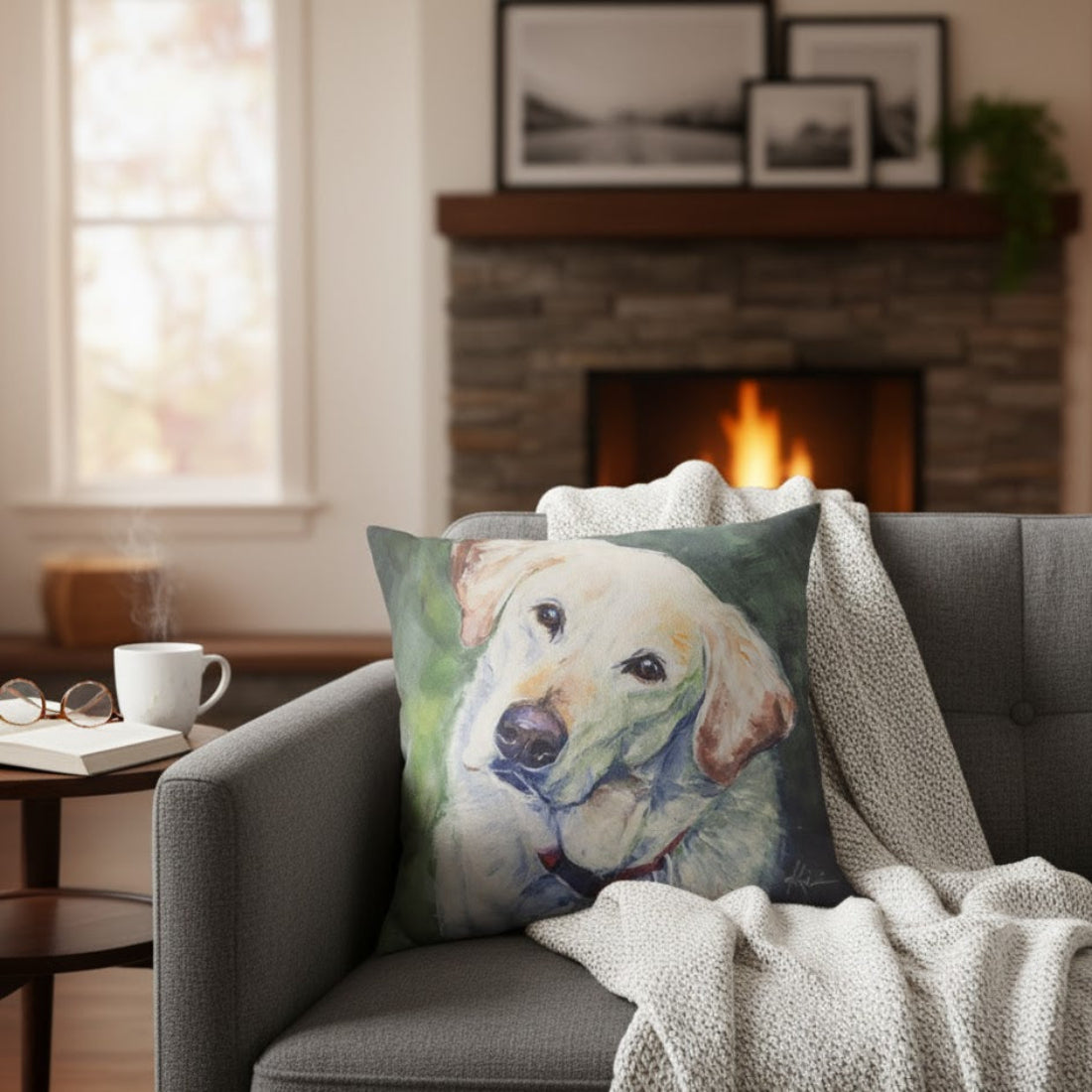 Celebrate your love for man’s best friend with the Yellow Lab 18" Climaweave Pillow, a charming accent perfect for dog lovers and cozy spaces. Crafted from 100% polyester, this decorative pillow showcases a detailed yellow Labrador portrait that adds warmth and personality to your home. Designed with Climaweave fabric, it resists moisture and fading, making it ideal for both indoor and outdoor use. Softly filled for long-lasting comfort and shape retention, it fits beautifully on sofas, benches, and patios alike. Bring a touch of canine charm to your décor with this weather-ready pillow that combines artistry, durability, and heartwarming design.