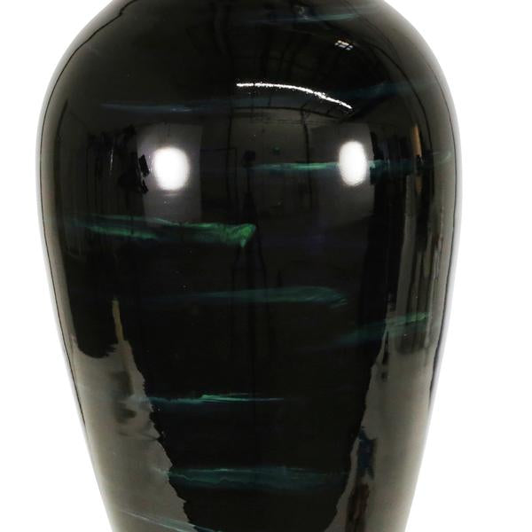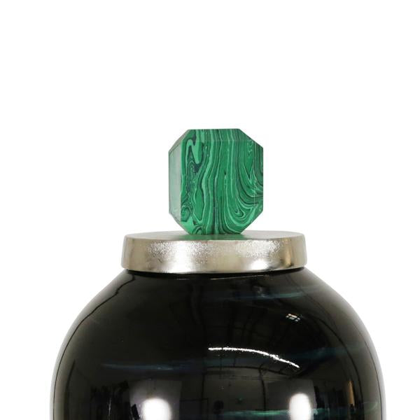 Benzara Contemporary Metal Elongated Urn Shaped Jar with Lid, Black and Green