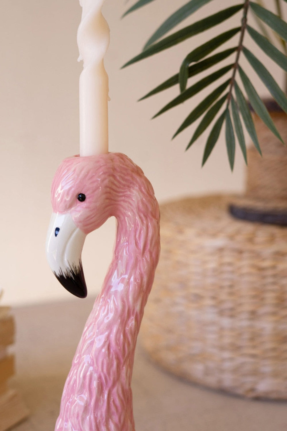 animal figurine candle holder,beach style candle holder,ceramic flamingo candle holder,coastal table décor,flamingo home accessories,flamingo taper holder,glazed ceramic candleholder,glossy ceramic taper holder,handcrafted flamingo décor,pink flamingo home décor,tropical ceramic candleholder,tropical décor accents