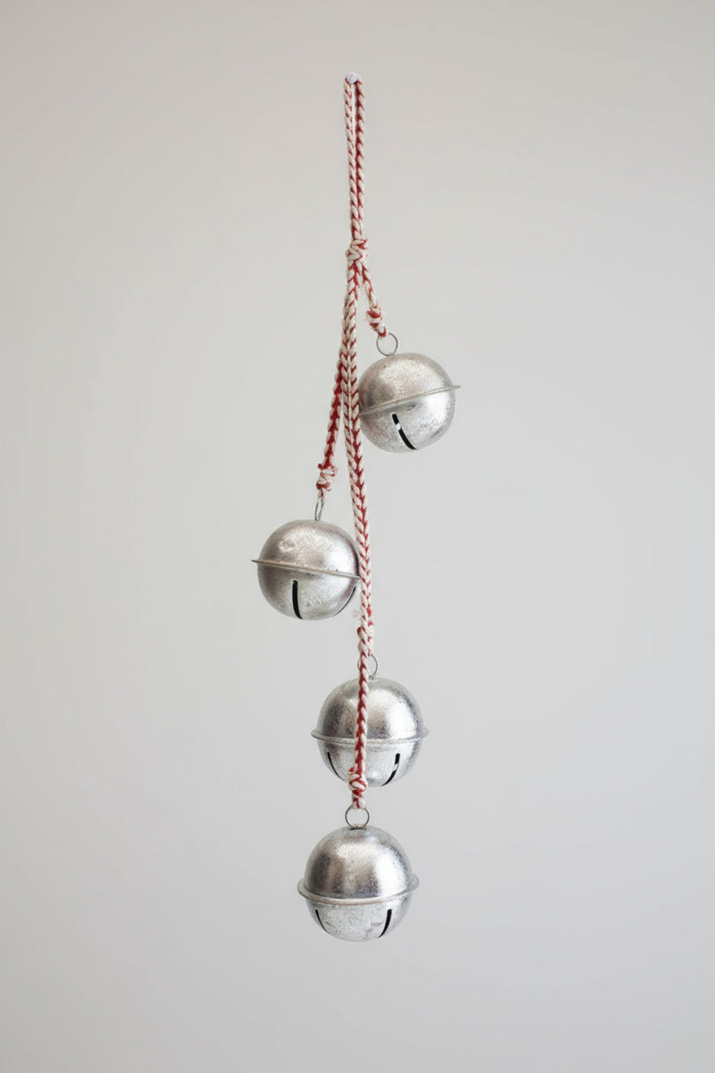 Silver Jingle Bell Cluster 29" – Holiday Hanging Decor with Cotton Rope By Kalalou