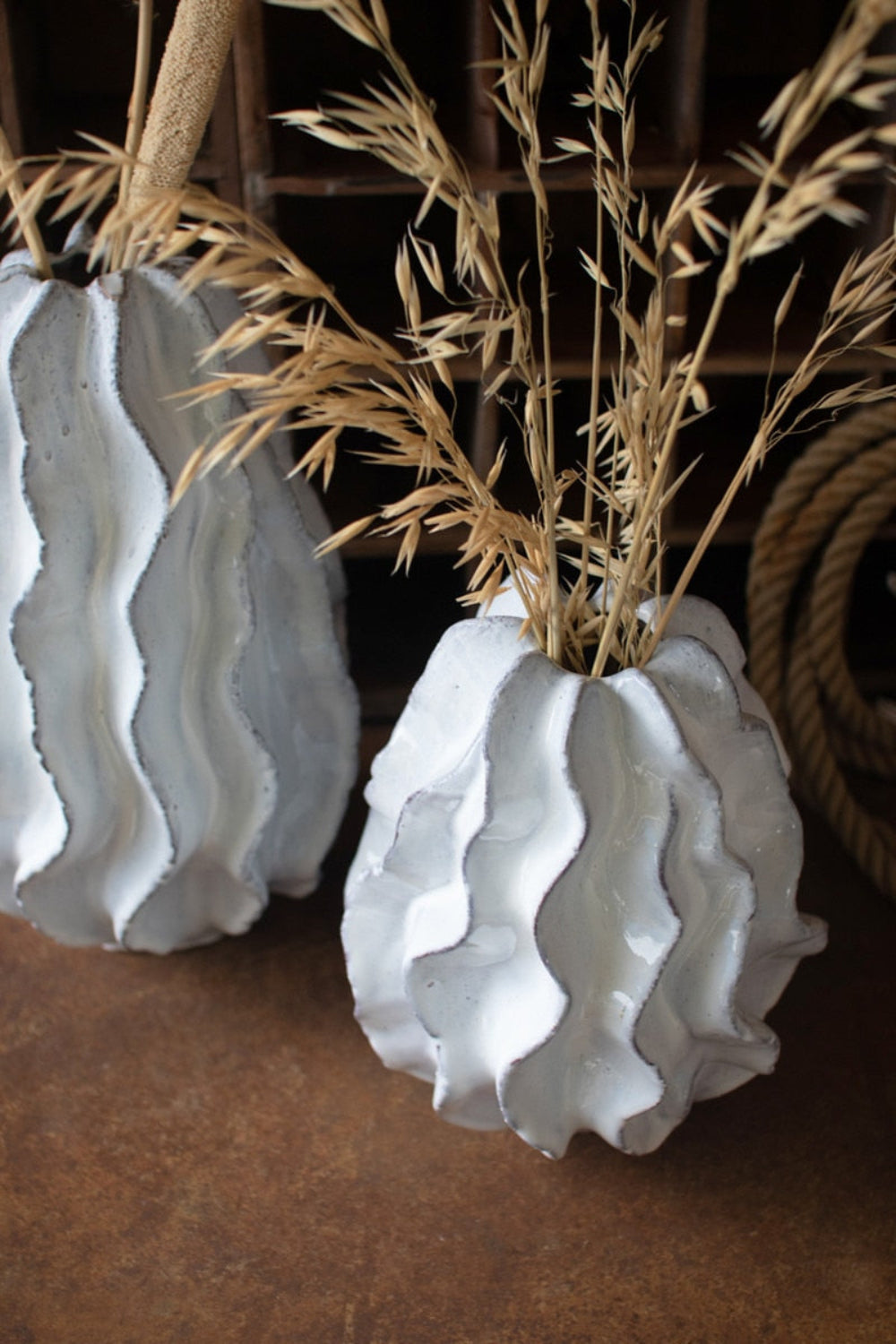 Ceramic Ruffle Vase 14.5"H – Large White Decorative Vase by Kalalou