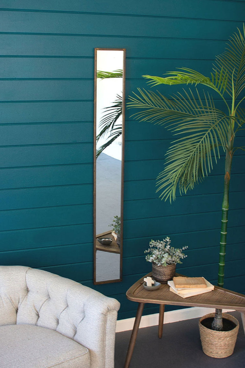 Tall Thin Wall Mirror 60"H – Antique Brass Metal & Glass Modern Wall Mirror By Kalalou
