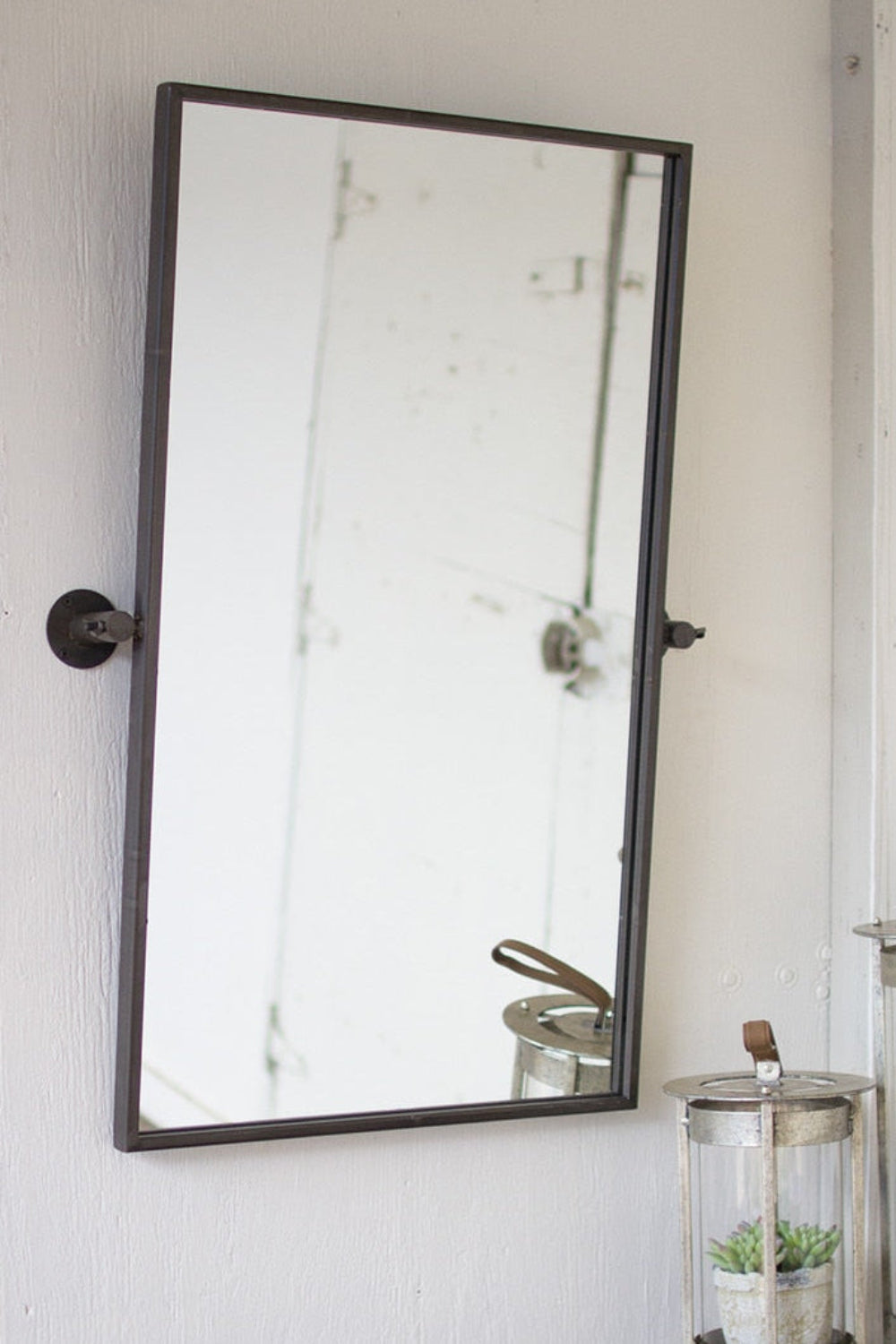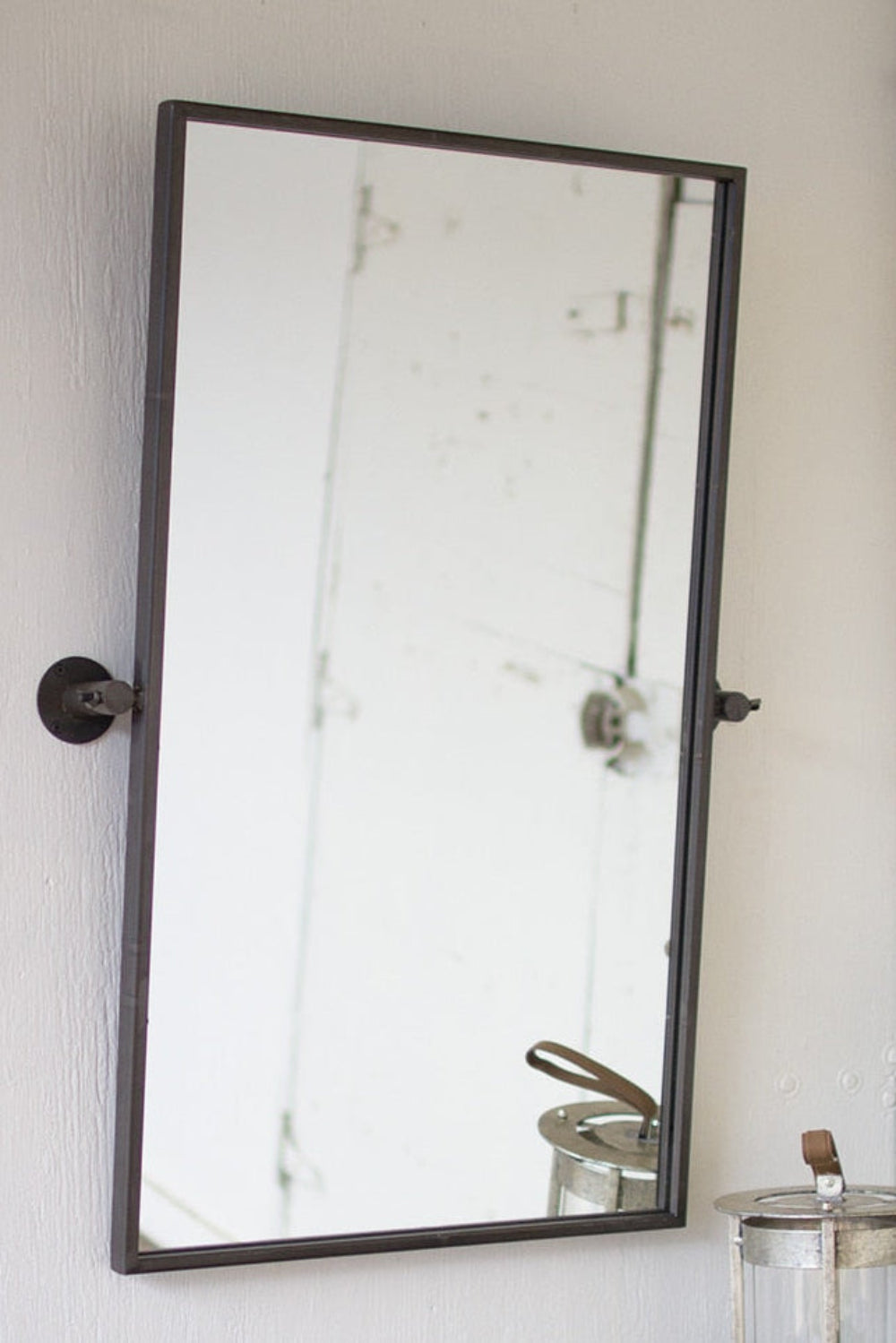 Wall Mirror 34"H, Adjustable Industrial Gunmetal Finish Tilting Mirror by Kalalou