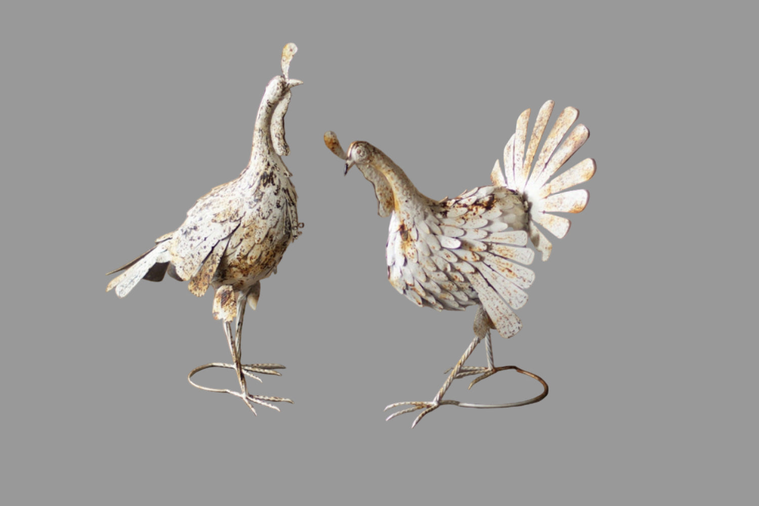 Decorative Antique Turkeys – White Metal – Set of 2 – 23 Inch By Kalalou