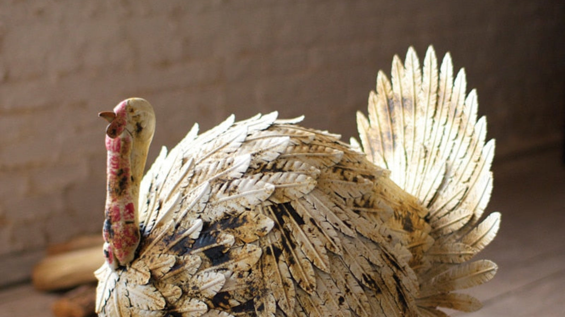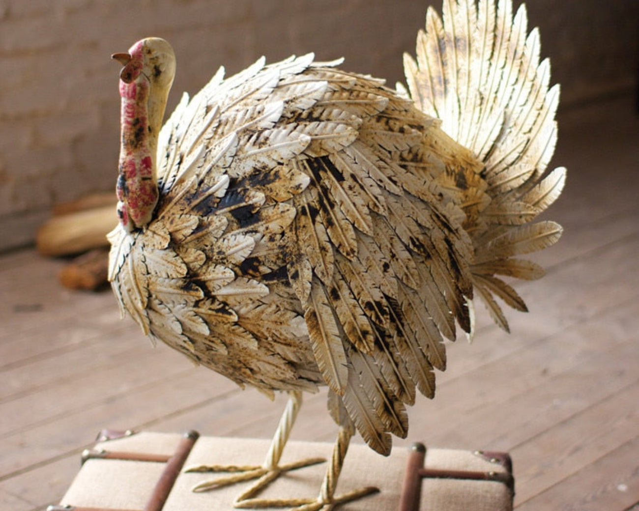 White Painted Metal Turkey Antique – 24 Inch Holiday Decor By Kalalou