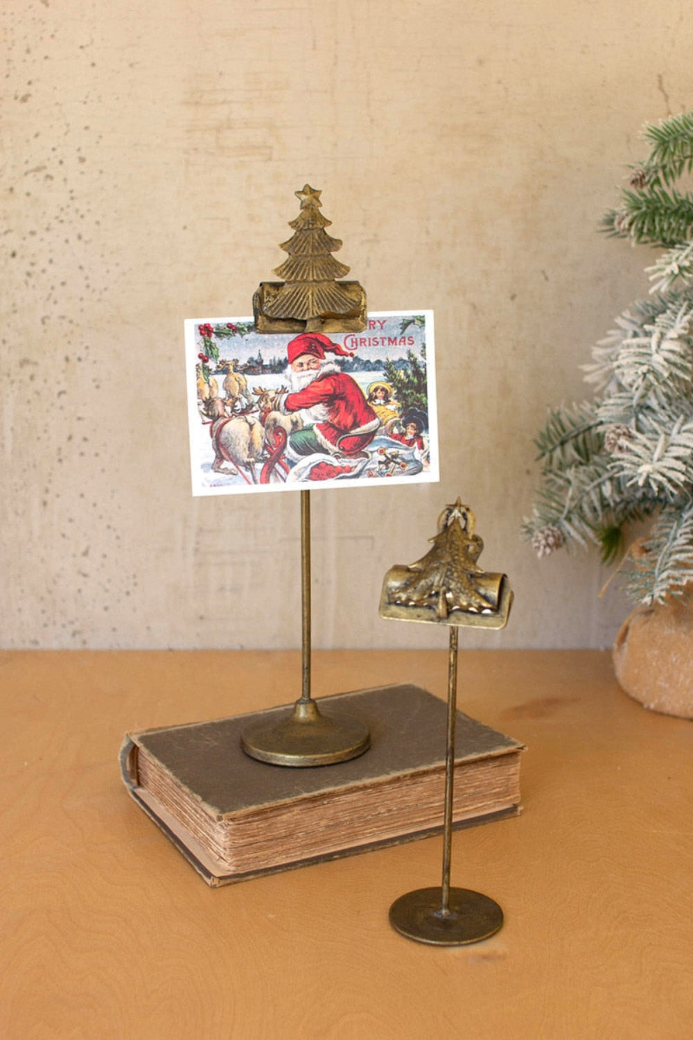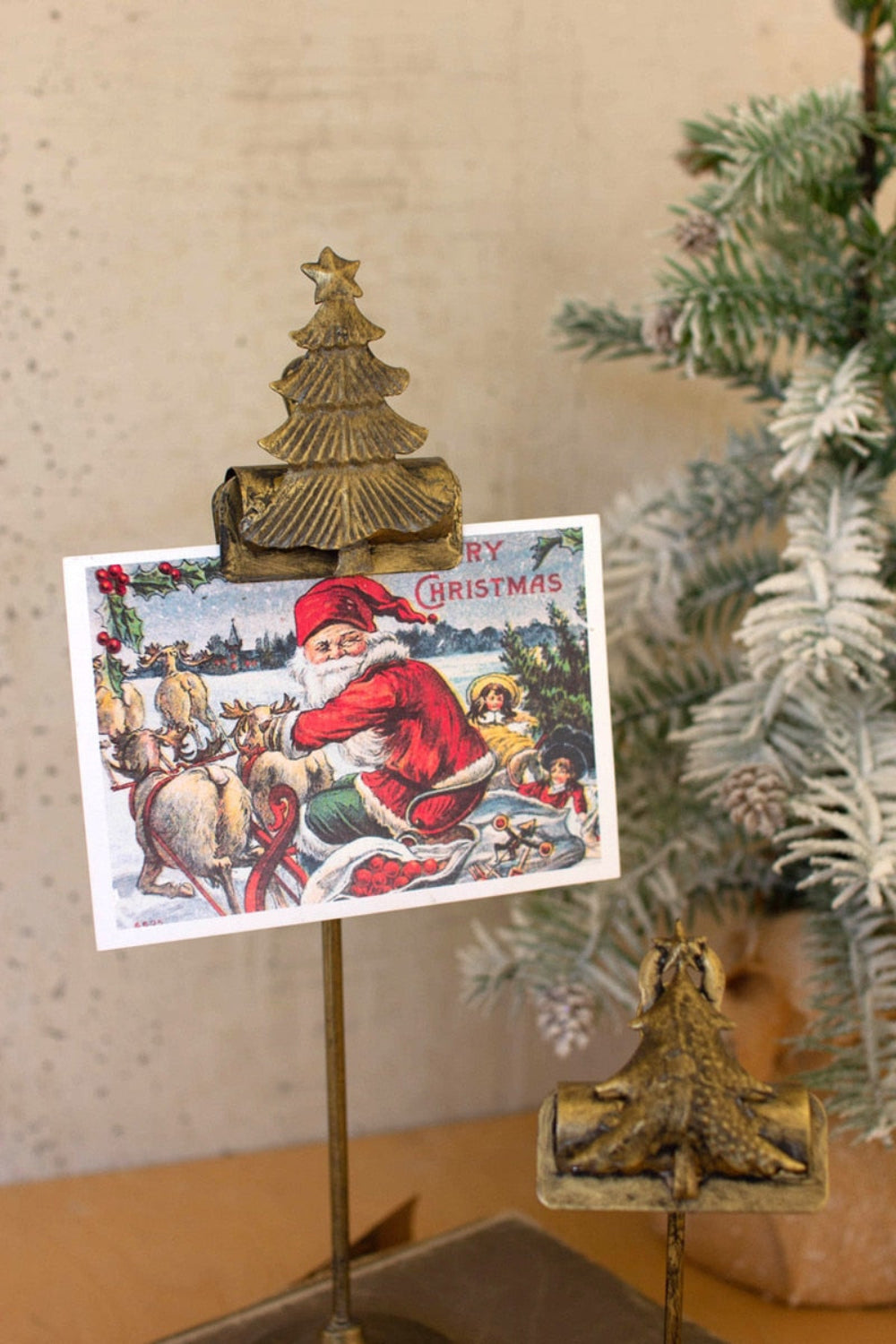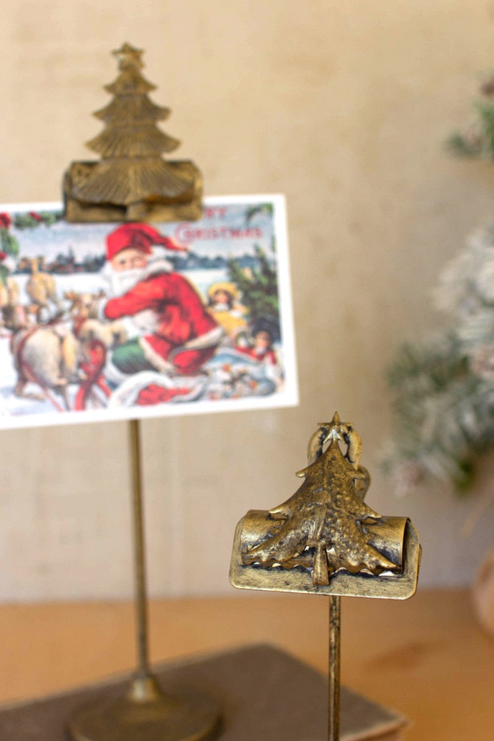 Kalalou Set of Two Christmas Tree Card Clips on Stands – Festive Metal Holiday Display