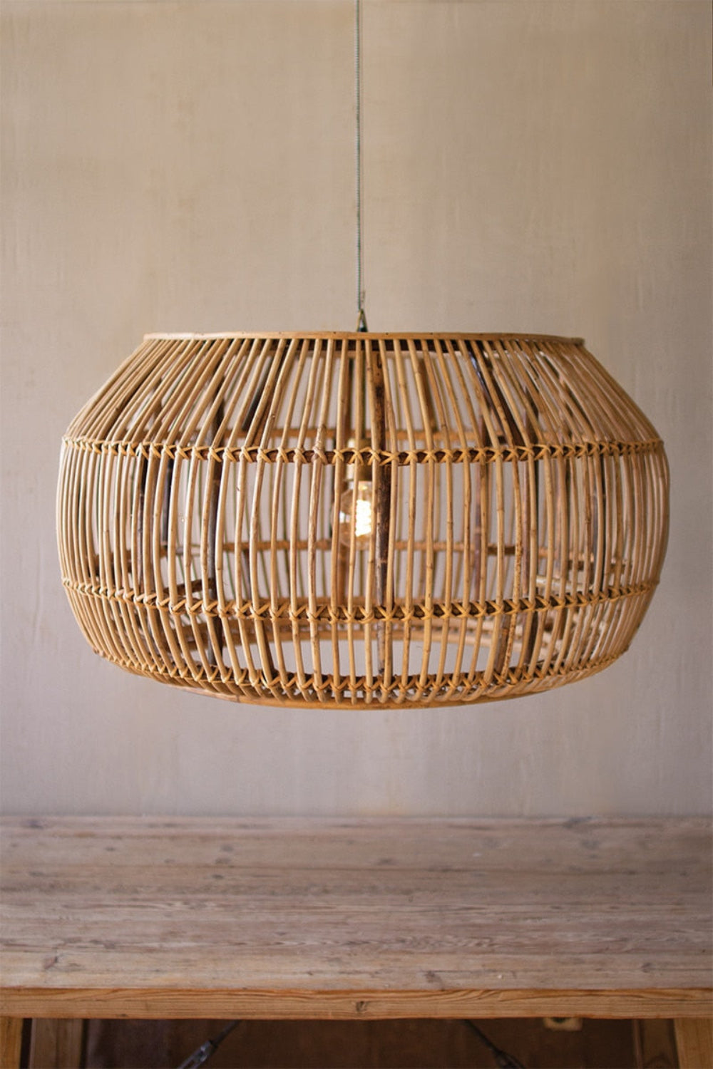 Natural Bamboo Round Pendant Light – 34" Wide Boho Ceiling Fixture by Kalalou