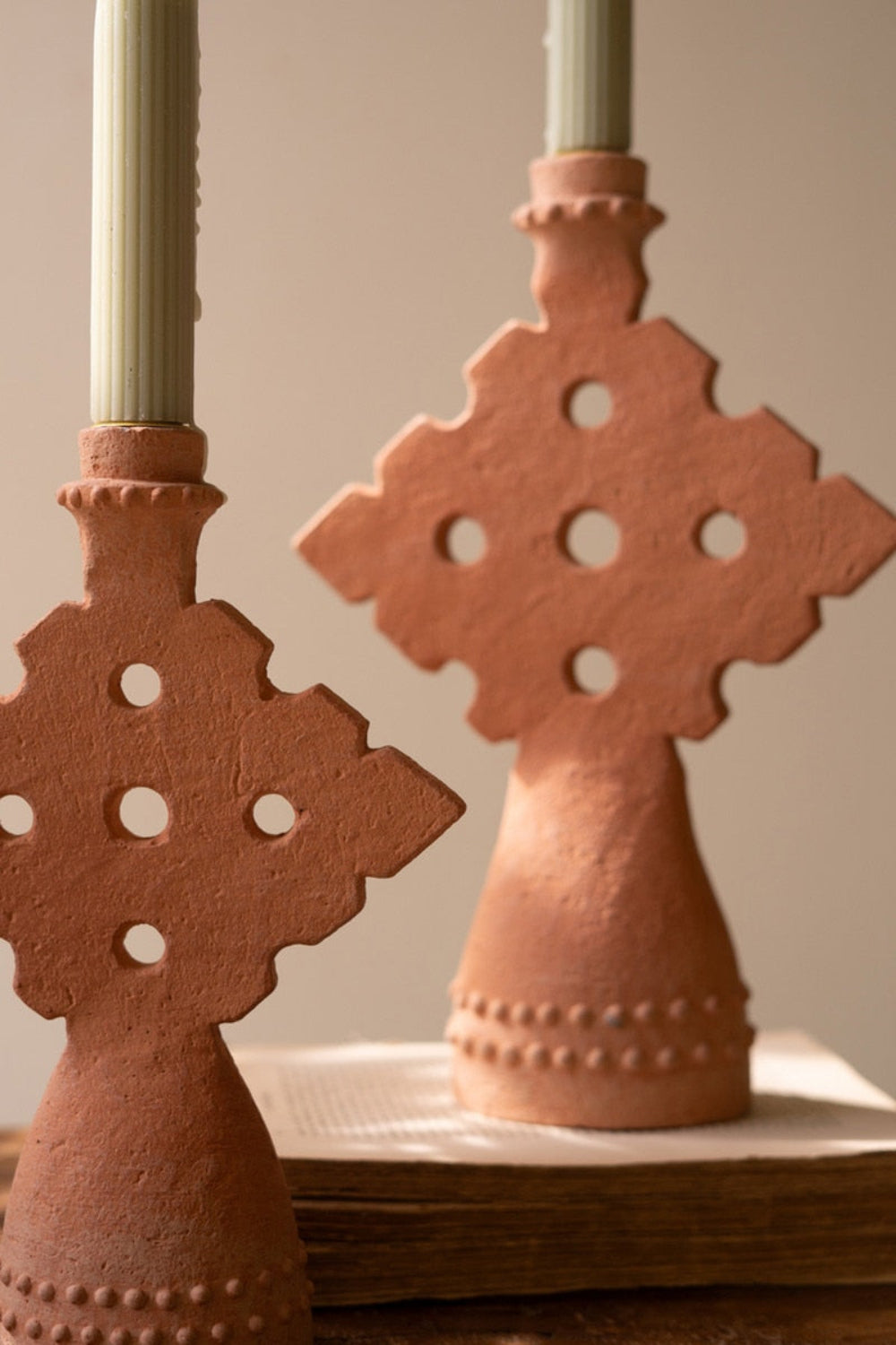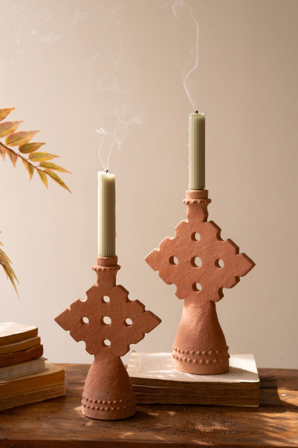 SKU - KAL-CHU1030Terracotta and Concrete Taper Candle Holders – Set of Two