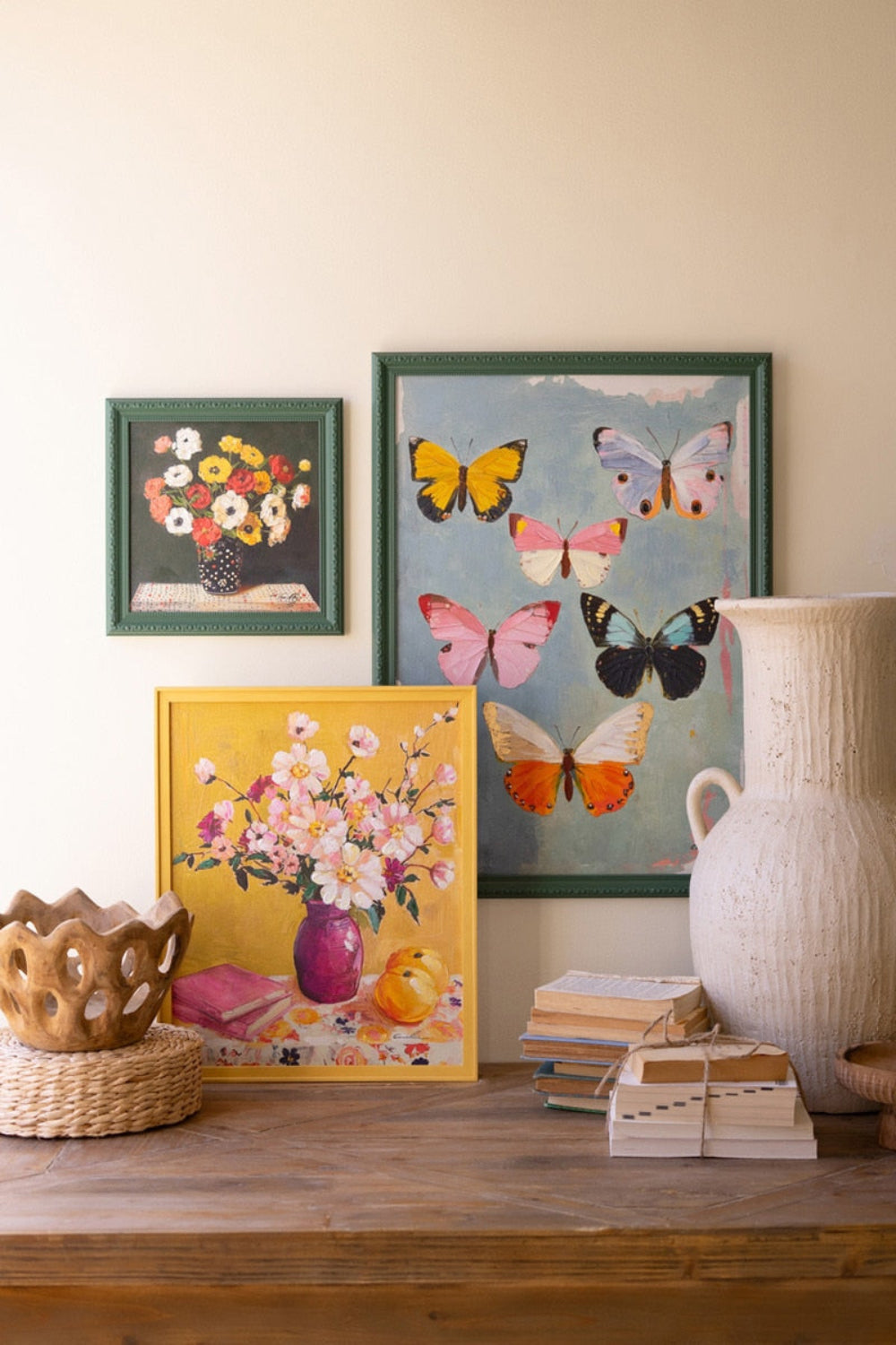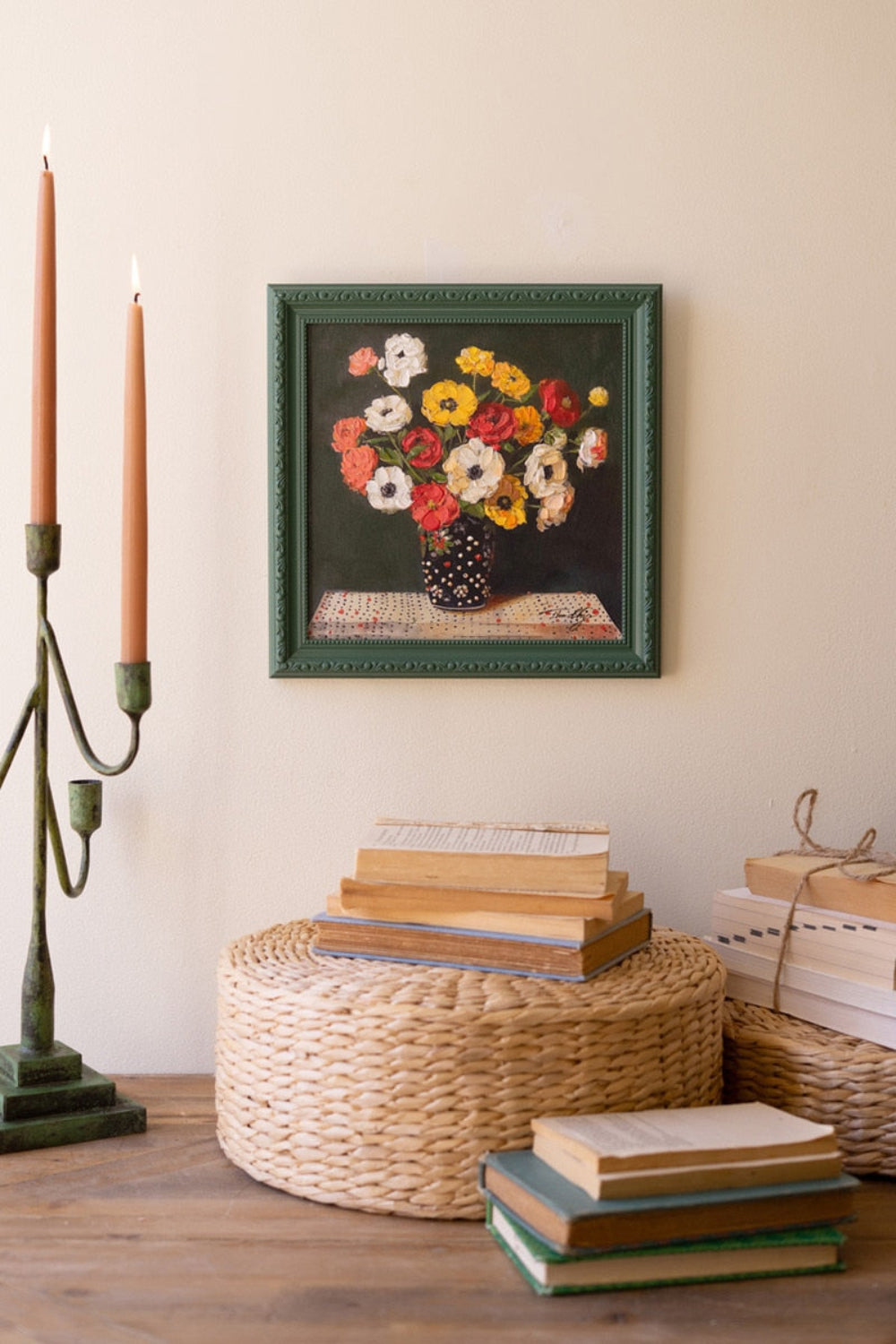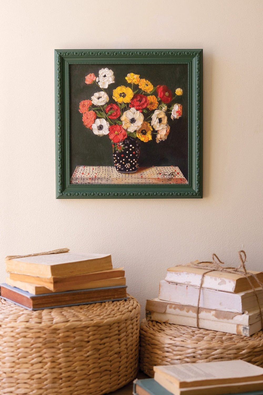 Wall Art – Green Framed Still Life Painting with Vase and Flowers by Kalalou
