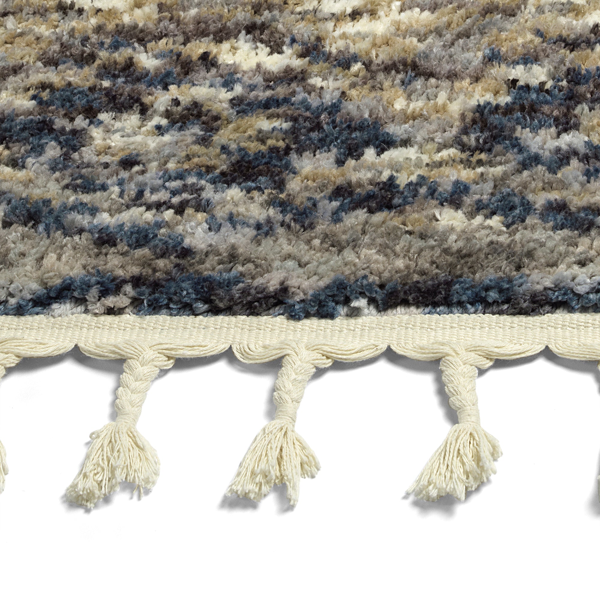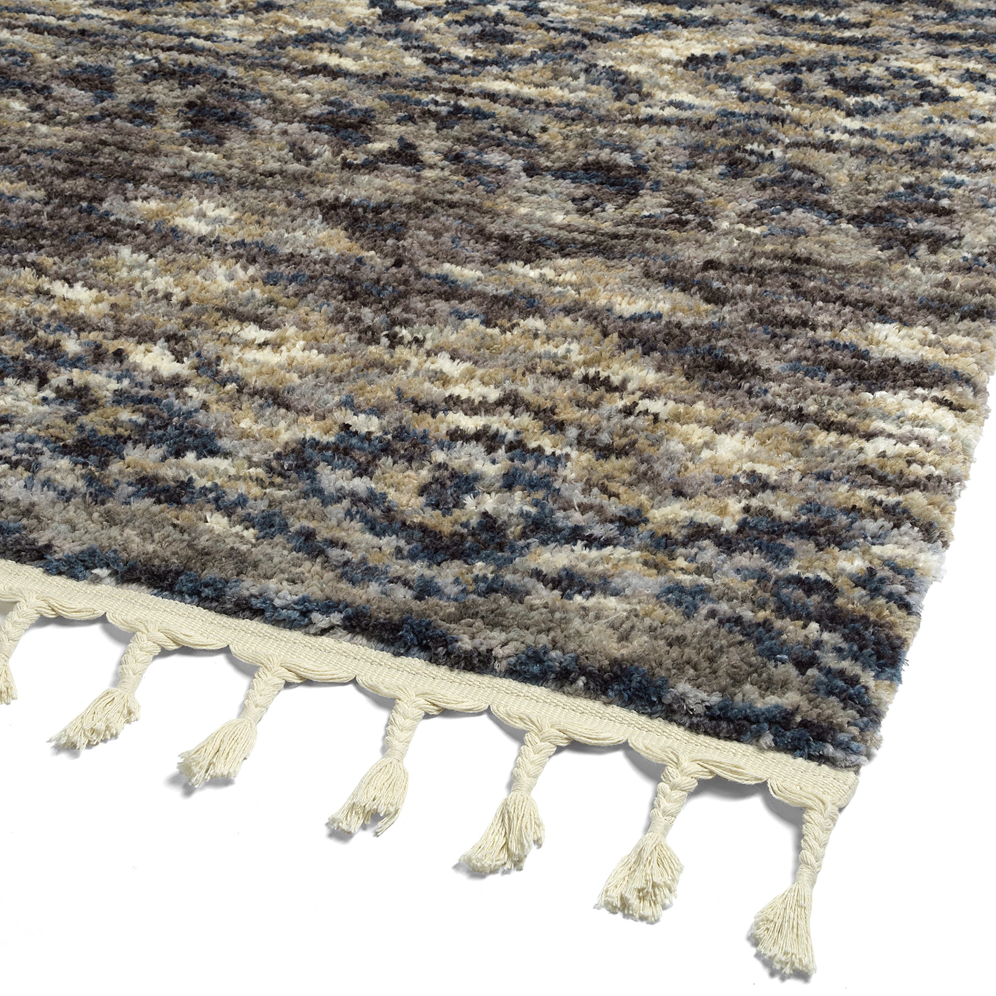 Shaggy and subtle describes the aztec inspired designs of the Duna collection. These super soft rugs feature a macromer type detail with oversized tassels. Machine-Made in Turkey of 100% polyester the 5 designs of the Duna collection are not only beautiful but also durable and easy to clean. Open-backed construction makes these rugs lightweight and easy to move from room to room.