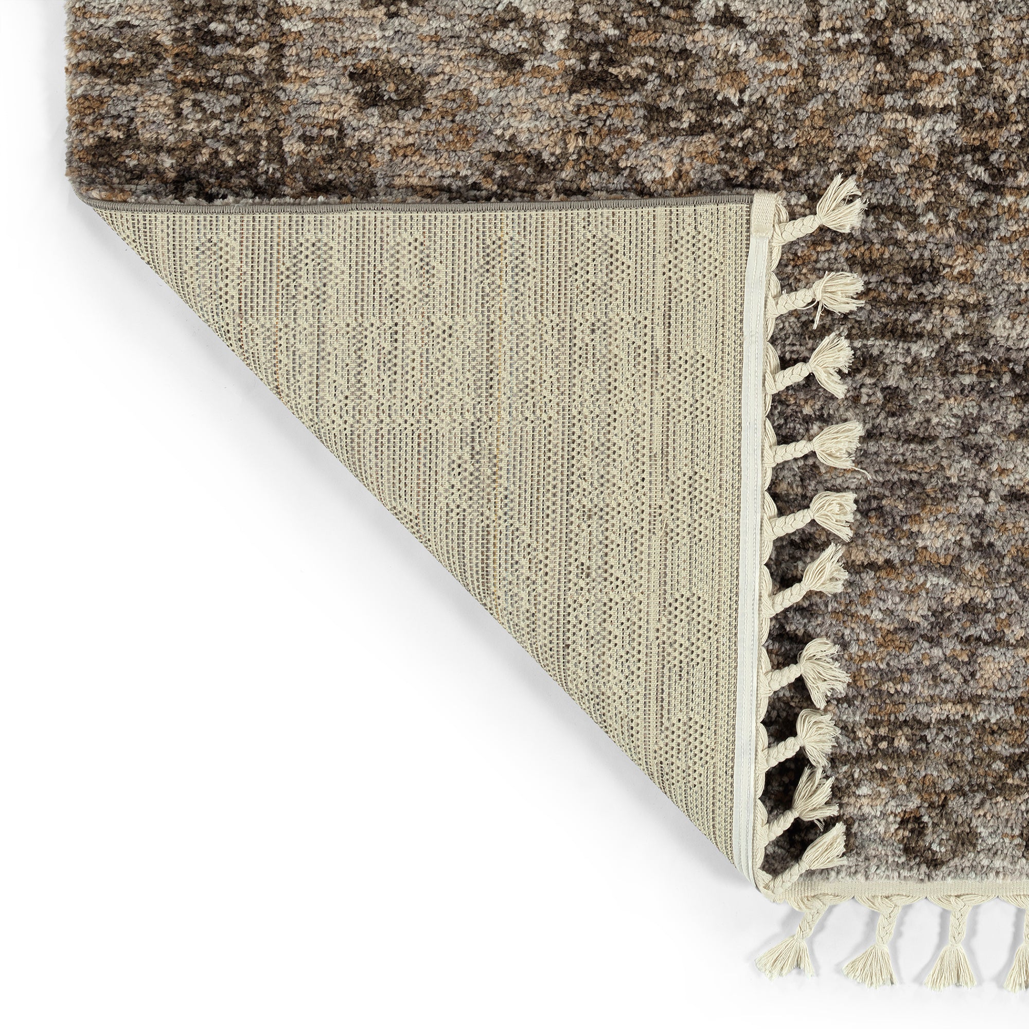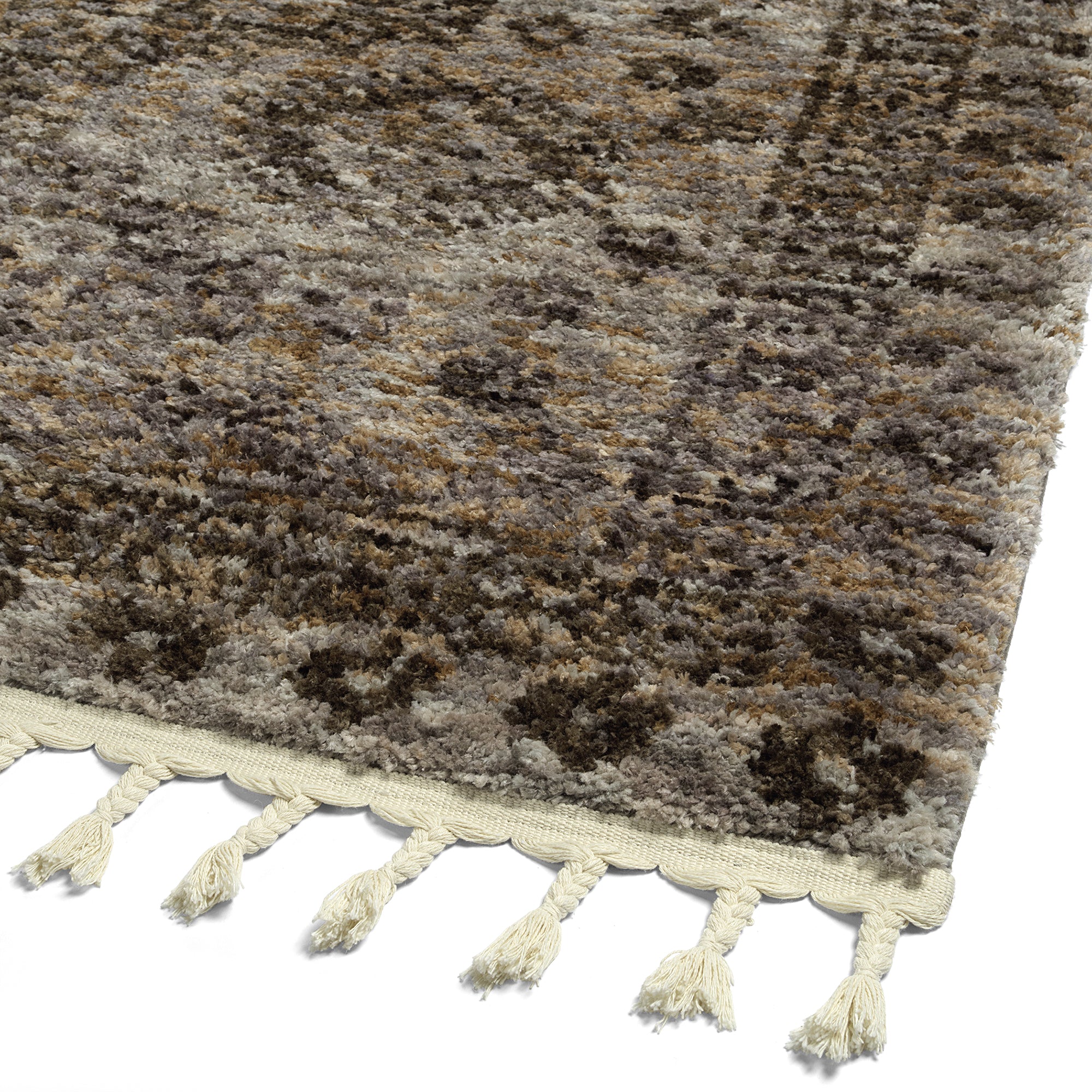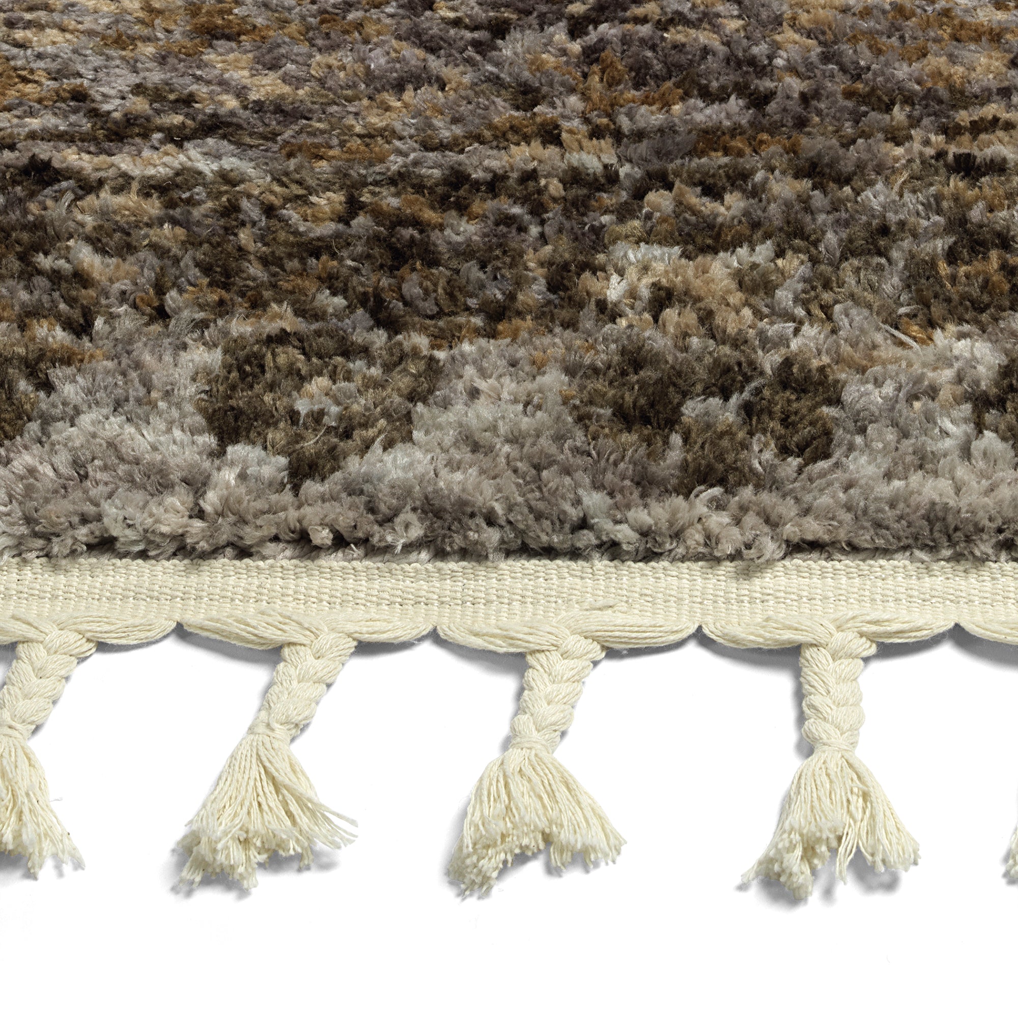 Shaggy and subtle describes the aztec inspired designs of the Duna collection. These super soft rugs feature a macromer type detail with oversized tassels. Machine-Made in Turkey of 100% polyester the 5 designs of the Duna collection are not only beautiful but also durable and easy to clean. Open-backed construction makes these rugs lightweight and easy to move from room to room.