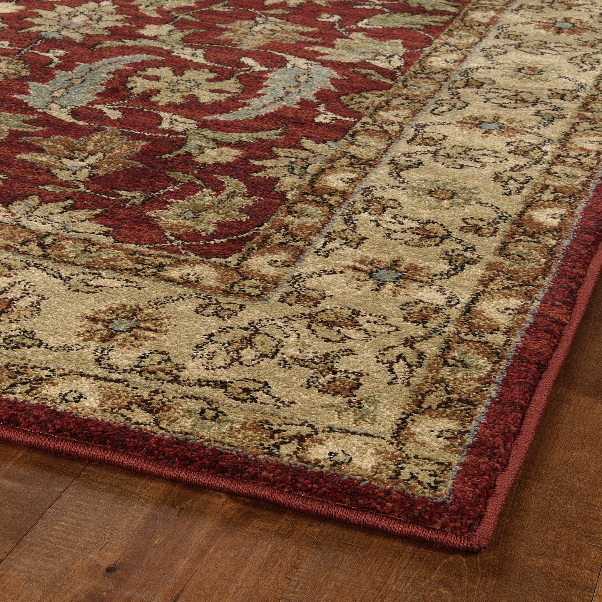 Classic designs with highly detailed borders in an array of traditional colors describe the multiple designs within the McAlister collection. Whether you have a downtown loft or a grand estate, the McAlister collection will bring a sense of elegance and style to any home. Machine-made in the United States from 100% Olefin makes this collection extremely durable and a breeze to clean. These rugs are open-backed, making them lightweight and easy to move.