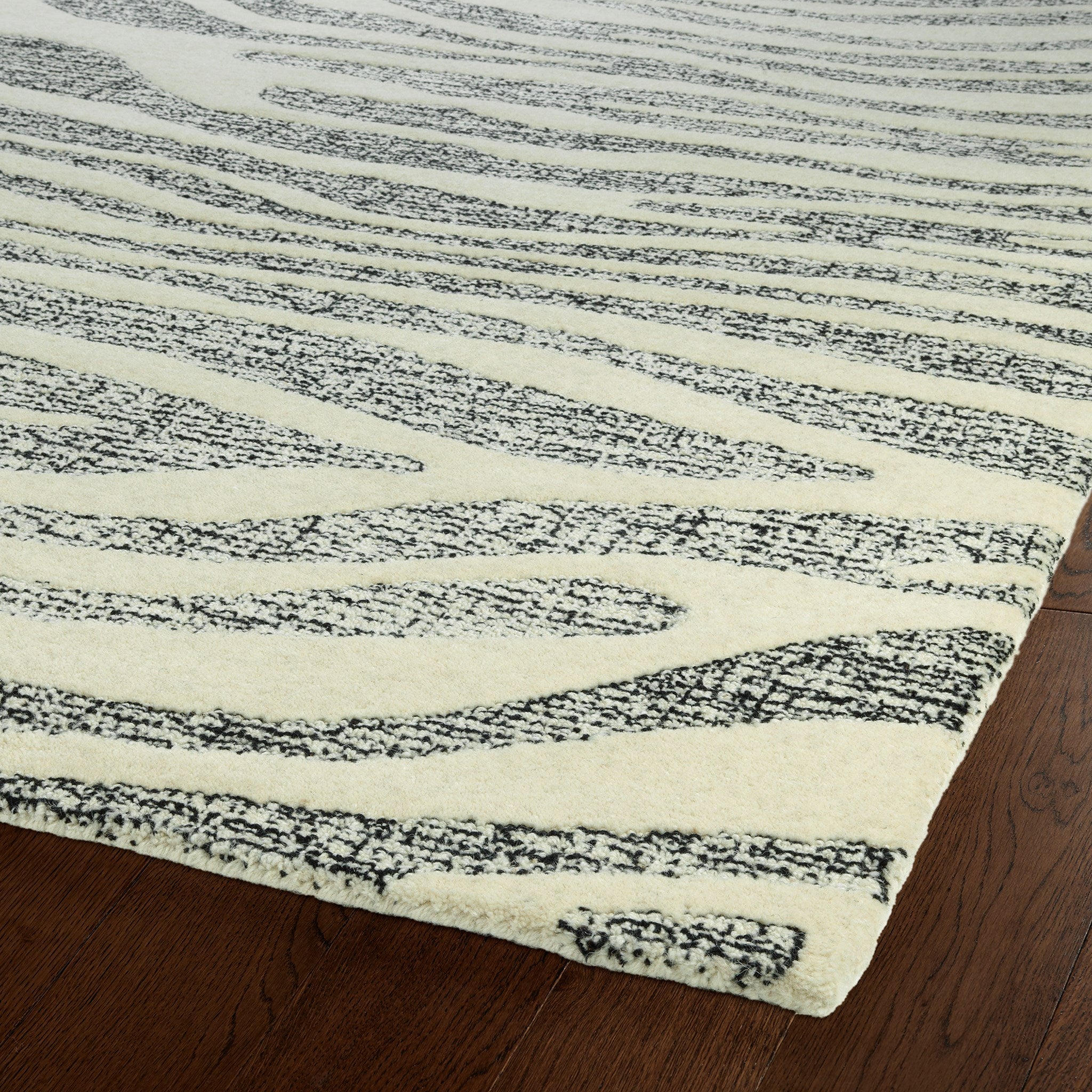 Stesso, defined as ``the same`` is references the repeated patterns in this varied area rug collection. Choose a modern design with high contrast to make a strong statement in a room, or choose a softer tone-on-tone option for a more cohesive look. The mix of cut and loop fibers add texture to the rugs, which are hand-tufted in India from 100% wool. Detailed colors for this rug are Ivory, Black