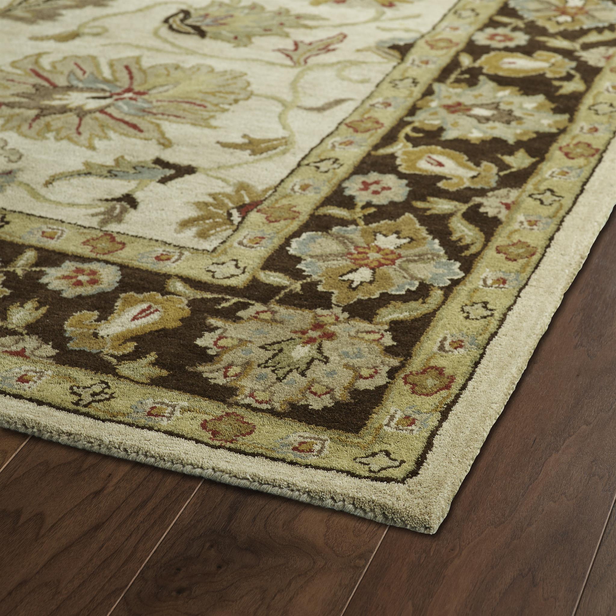 The Taj collection is inspired with classic style and traditional patterns that mix beautifully with today`s formal, casual, and transitional décor to complete a forever timeless masterpiece. Hand-tufted in India of 100% wool. Detailed colors for this rug are Beige, Chocolate Brown, Sage Green, Olive Green, Teal Green, Burgundy.