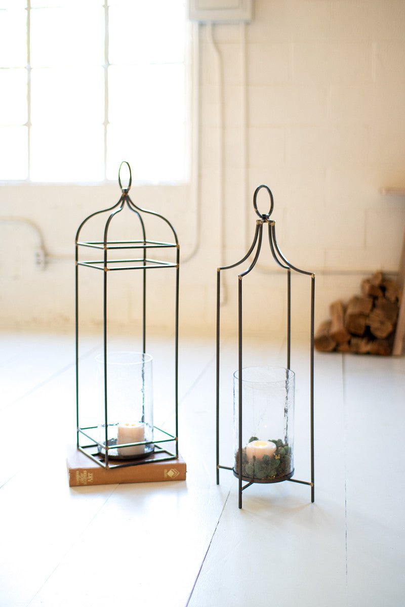 Kalalou NMG1027 Iron Lantern with Glass Hurricane