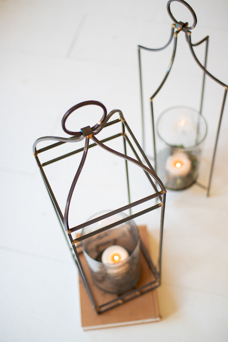 Featuring a classic lantern shape, this iron lantern with glass hurricane is the perfect place to display candles or strands of lights to create a beautiful light display. - Black Iron Lantern with Glass Hurricane - Black Iron - Set includes 2 pieces - 8 Inch x 8 Inch x 30 Inch T