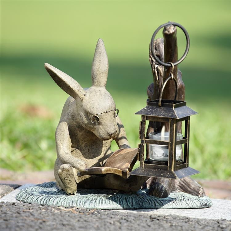 SPI Home 33778 Aluminum & Glass Book Lover Rabbit Garden Lantern - Garden Decor