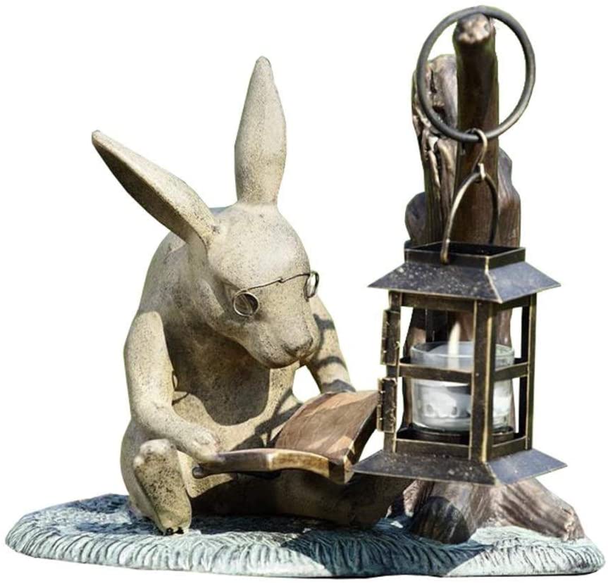 SPI Home Booklover Aluminum Glass Rabbit Garden Lantern Sold by Uber Bazaar