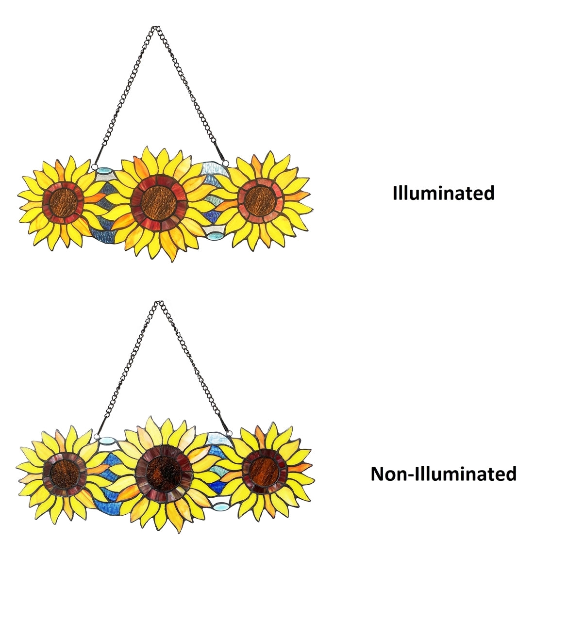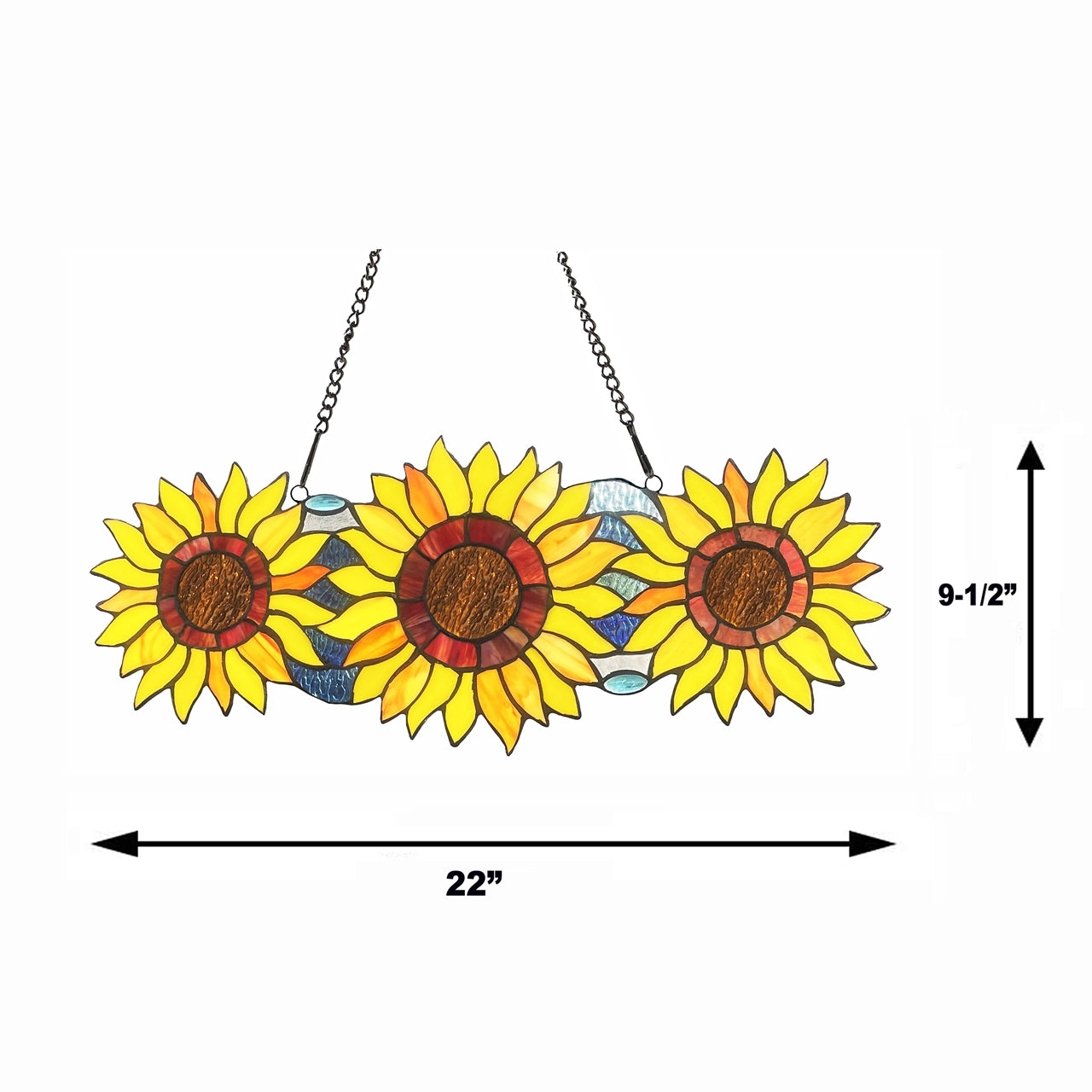 Chloe Lighting ANNUUS Floral-Style Stained Glass Window Panel, 22" Wide, Handcrafted Sunflower Tiffany Glass with Hanging Chain