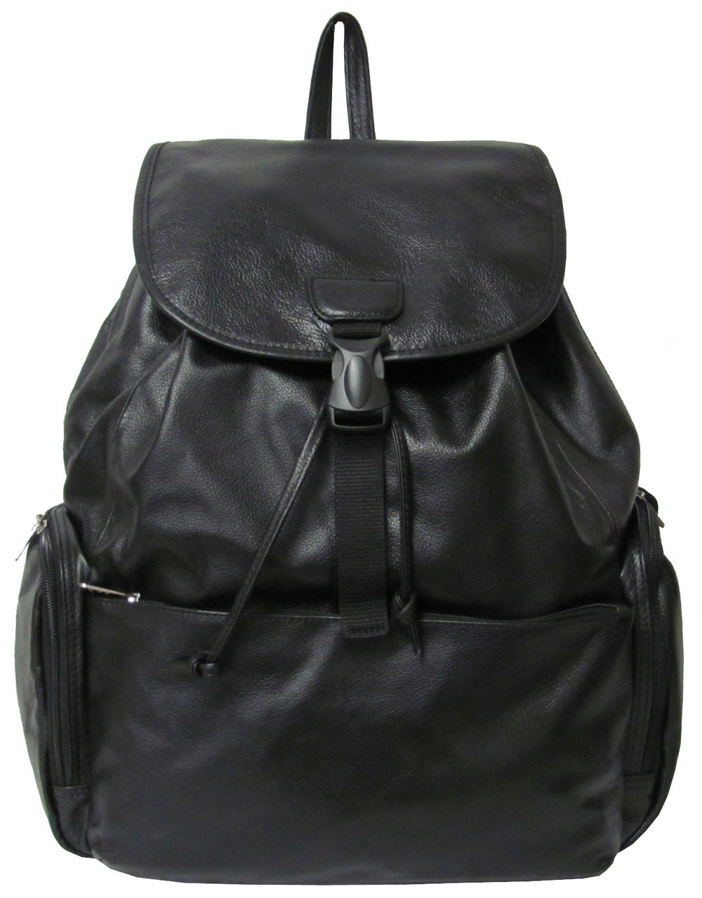 • A large flap closure with a snap buckle