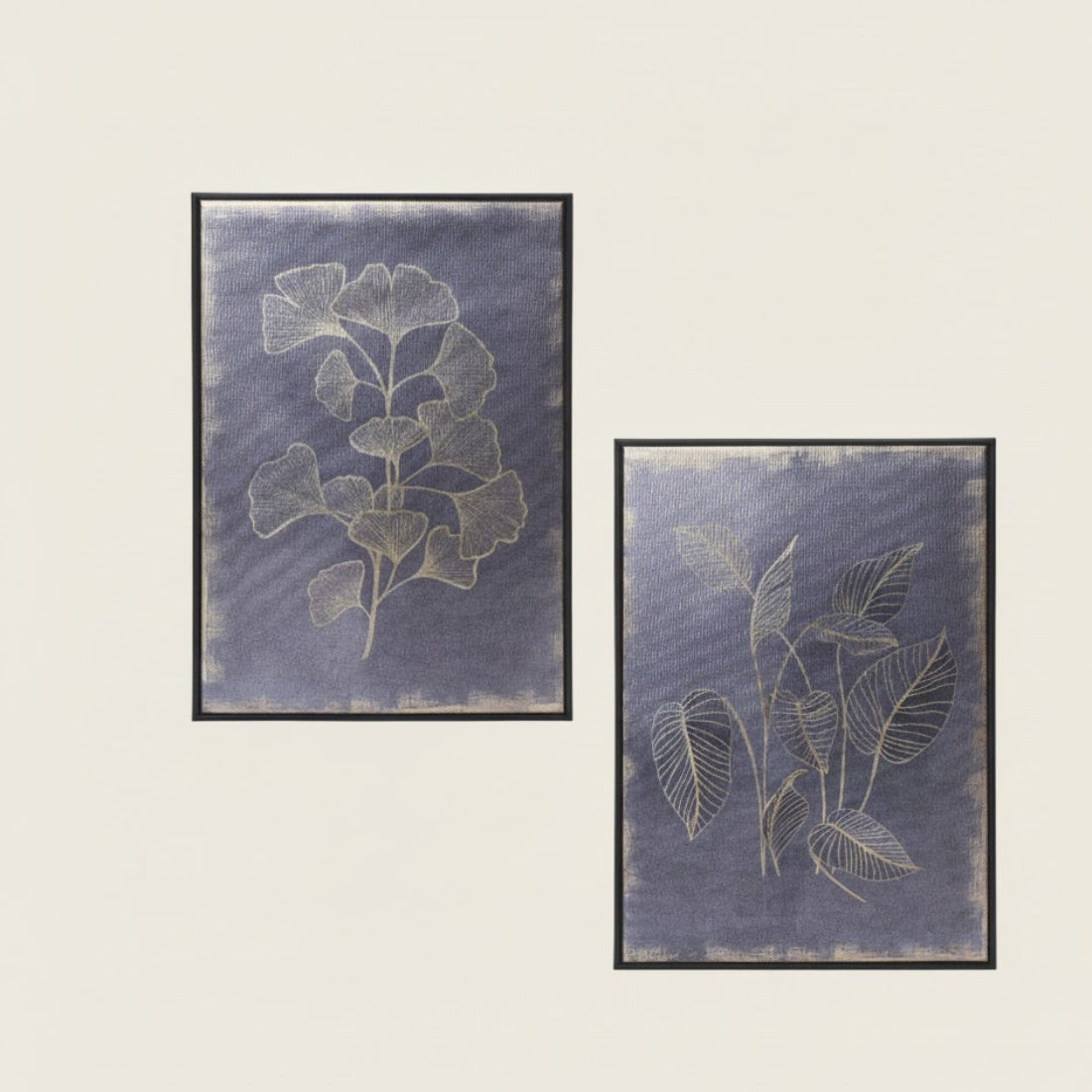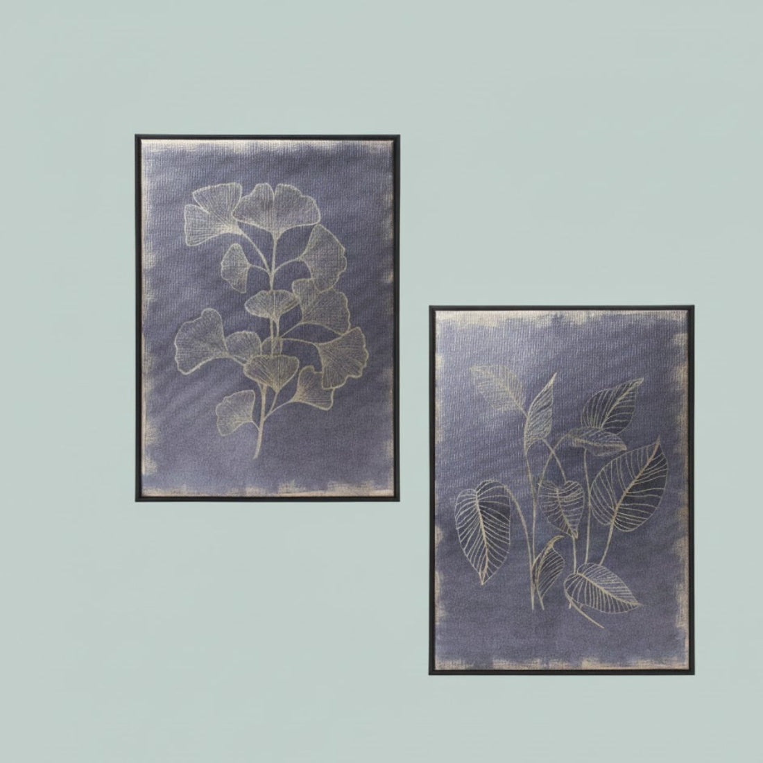 SKU - MEL-85119DS- Set of 2 coordinating foliage prints with gold botanical designs