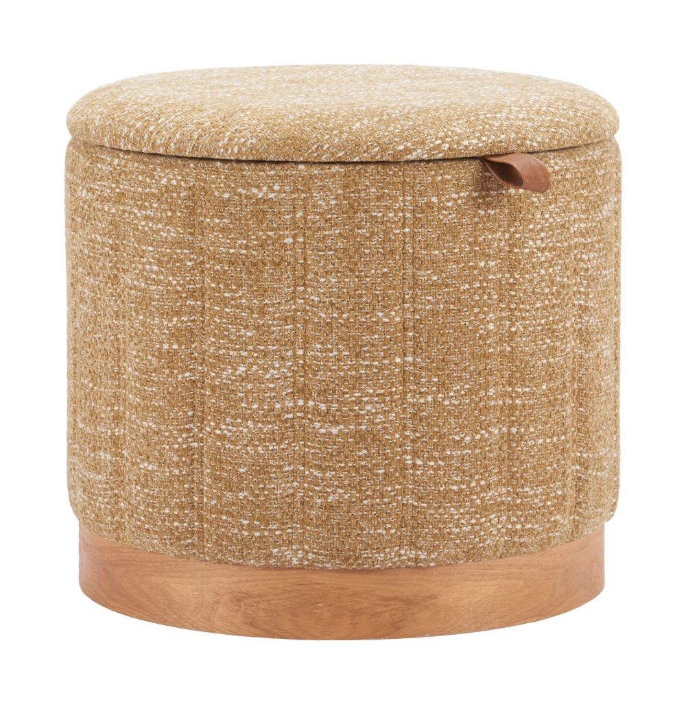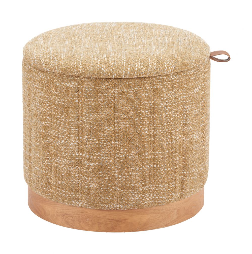 Storage Ottoman 18.7"H Oat Yellow – Textured Polyester Fabric with Hidden Compartment, Modern Living Room Ottoman By Zuo Modern