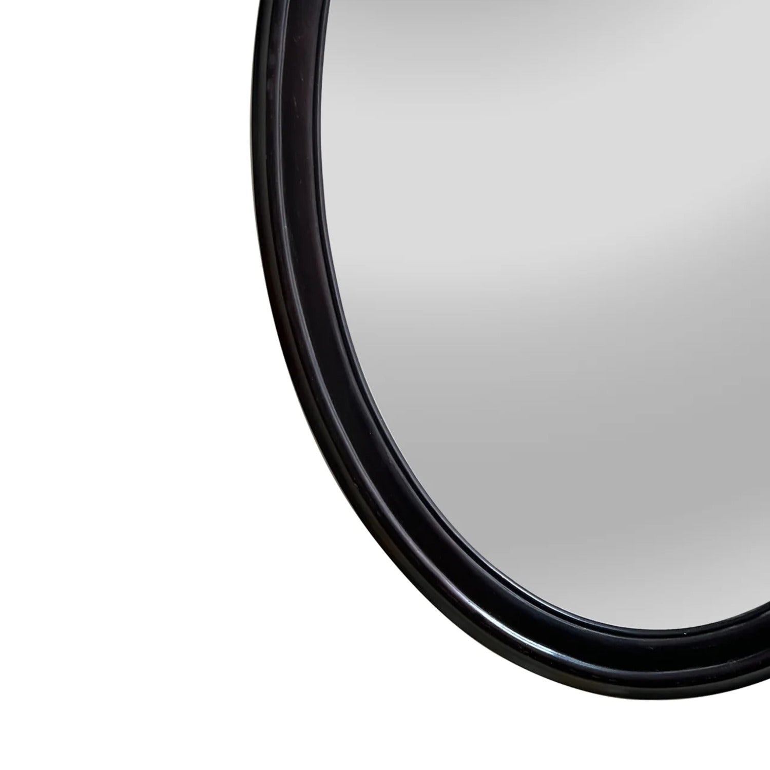 Looking for a modern touch for your home? This oval shaped, framed wall mirror is just the piece you`ve been searching for! This mirror has a black finish, hangs vertically, and will look great in the bathroom and as a vanity for a makeup stand! The mirror is damp listed for use in a restroom, but is not recommended for use outdoors.