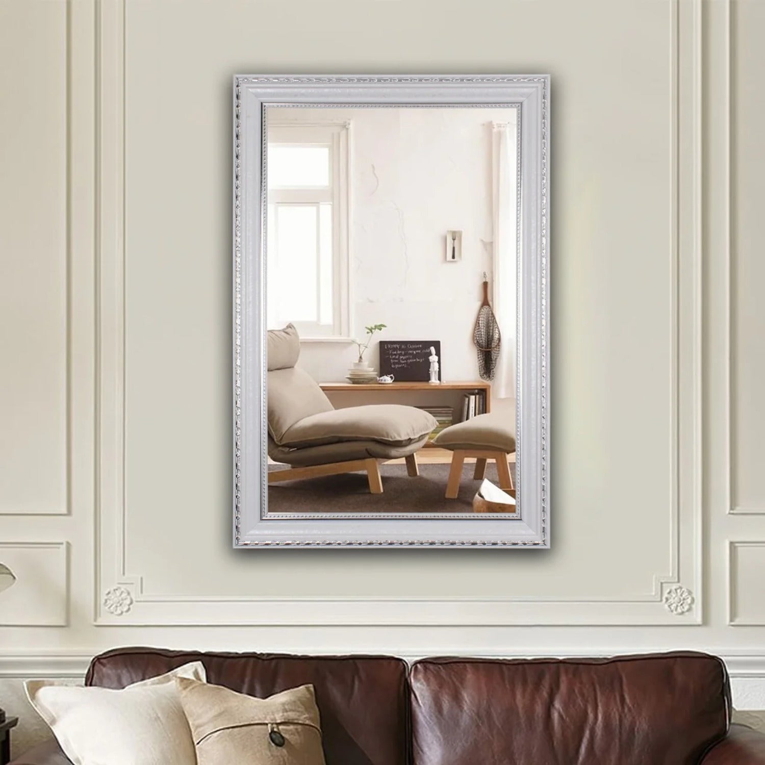 Chloe's Reflection CH8M022WS35-VRT Contemporary White Rectangle Framed Wall Mirror 35" Width