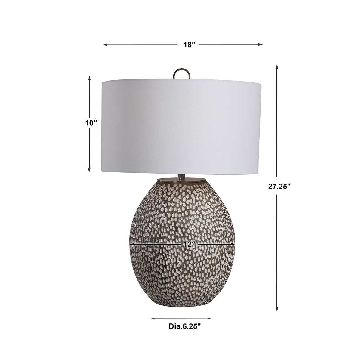 Uttermost Cyprien Gray White Table Lamp with Textured Ceramic Finish & Drum Shade, 28.25"H
