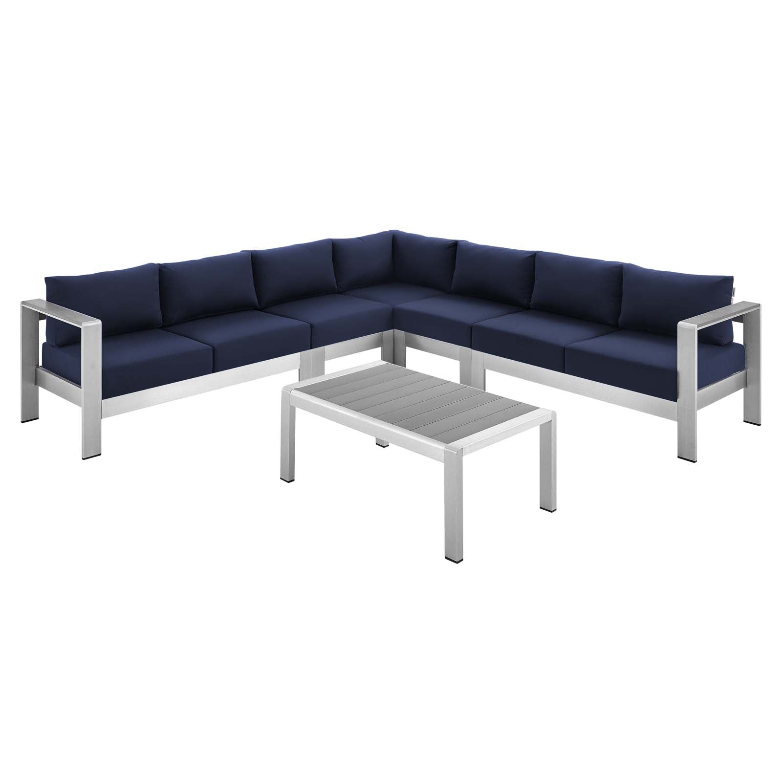 SKU - MDW-EEI-4319-SLV-GRY-SET SKU - MDW-EEI-4319-SLV-NAV-SETShore Sunbrella Fabric Outdoor Patio Aluminum 6 Piece Sectional Sofas Set Only at Uber Bazaar