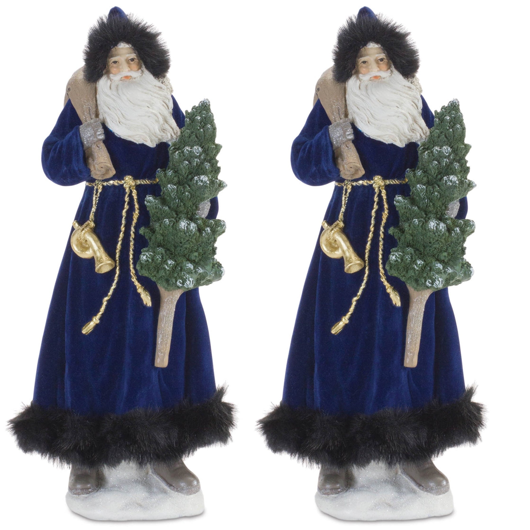 Hooded Santa with Pine Tree Figurine 15"H Blue and White Polyresin Holiday Decor (Set of 2) by Melrose
