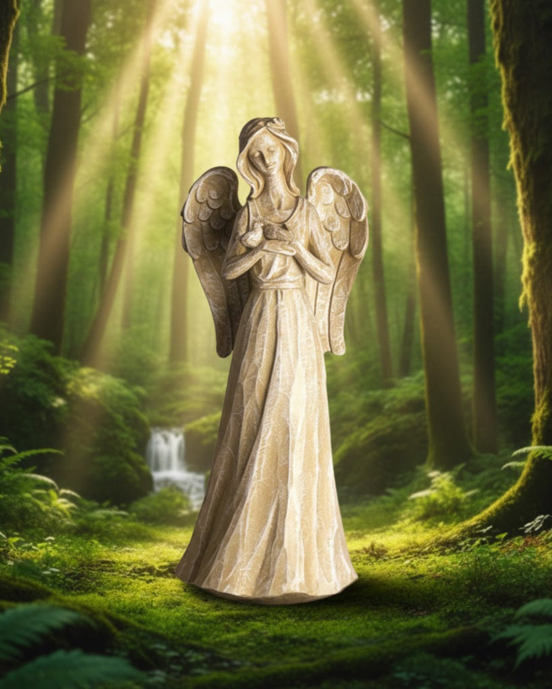 Standing 16.5 inches tall, it makes a beautiful focal point in gardens, walkways, patios, flower beds, or even as an indoor decorative accent. Its sturdy polyresin construction ensures long-lasting beauty while maintaining a lightweight structure for easy placement.Perfect for garden décor, memorial spaces, spiritual settings, or as a thoughtful gift.