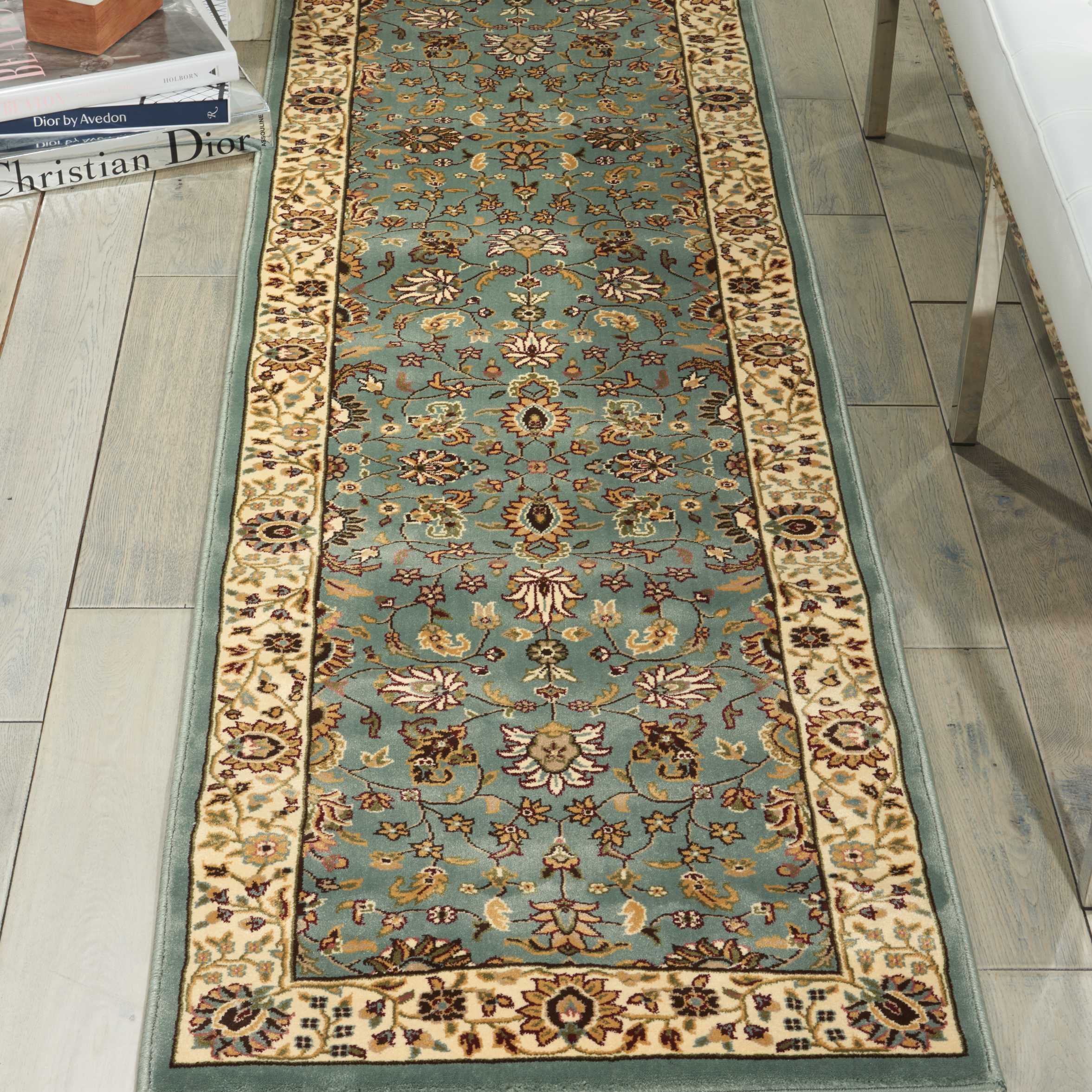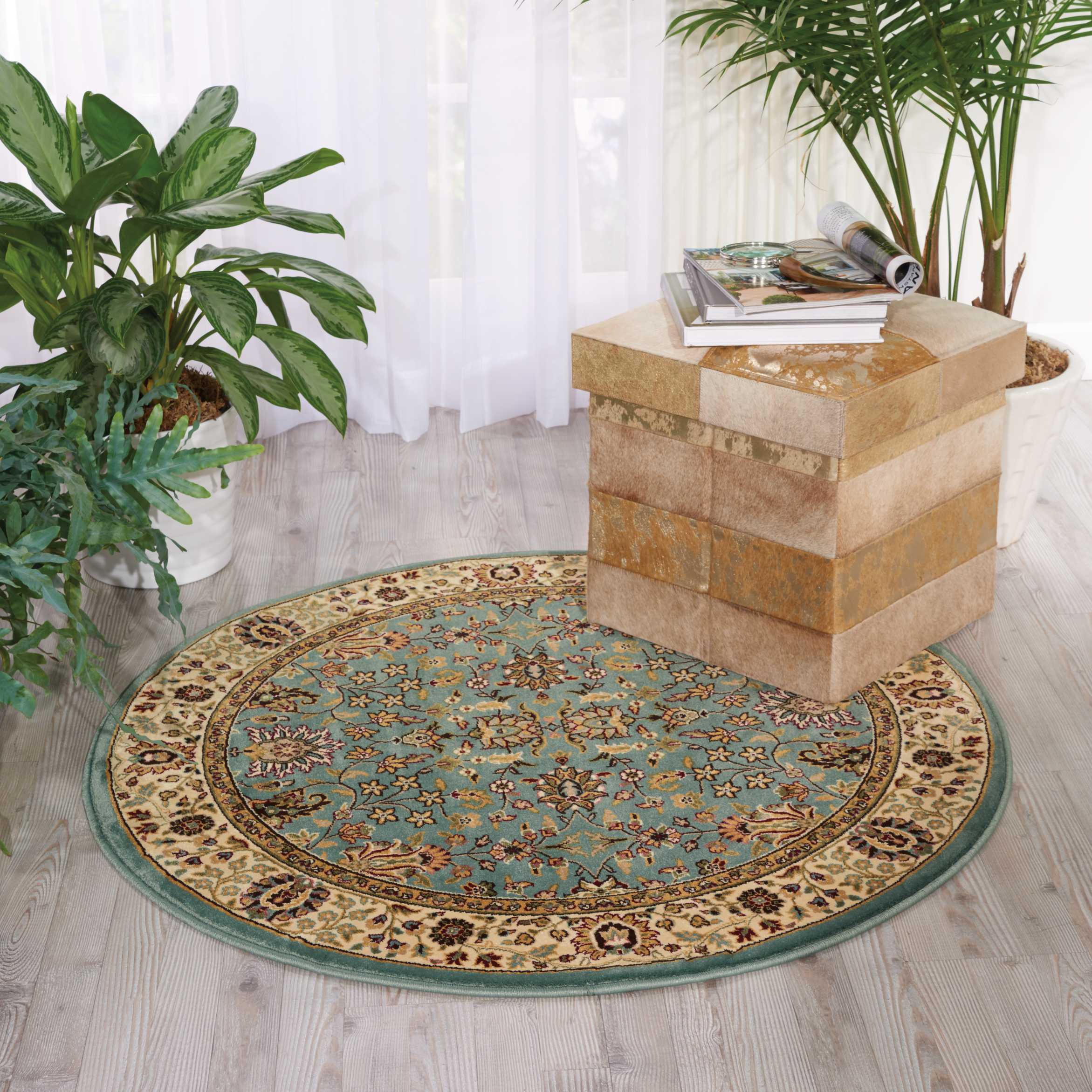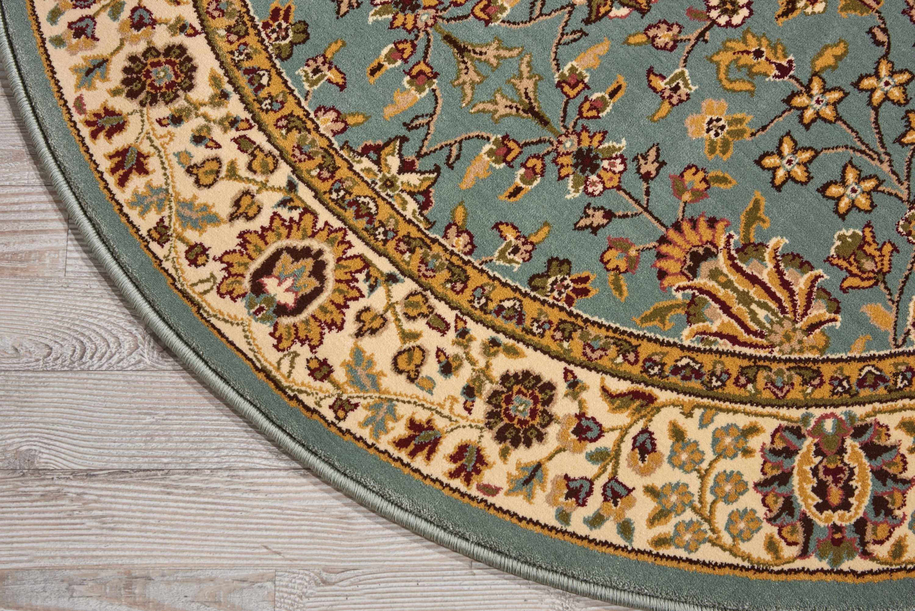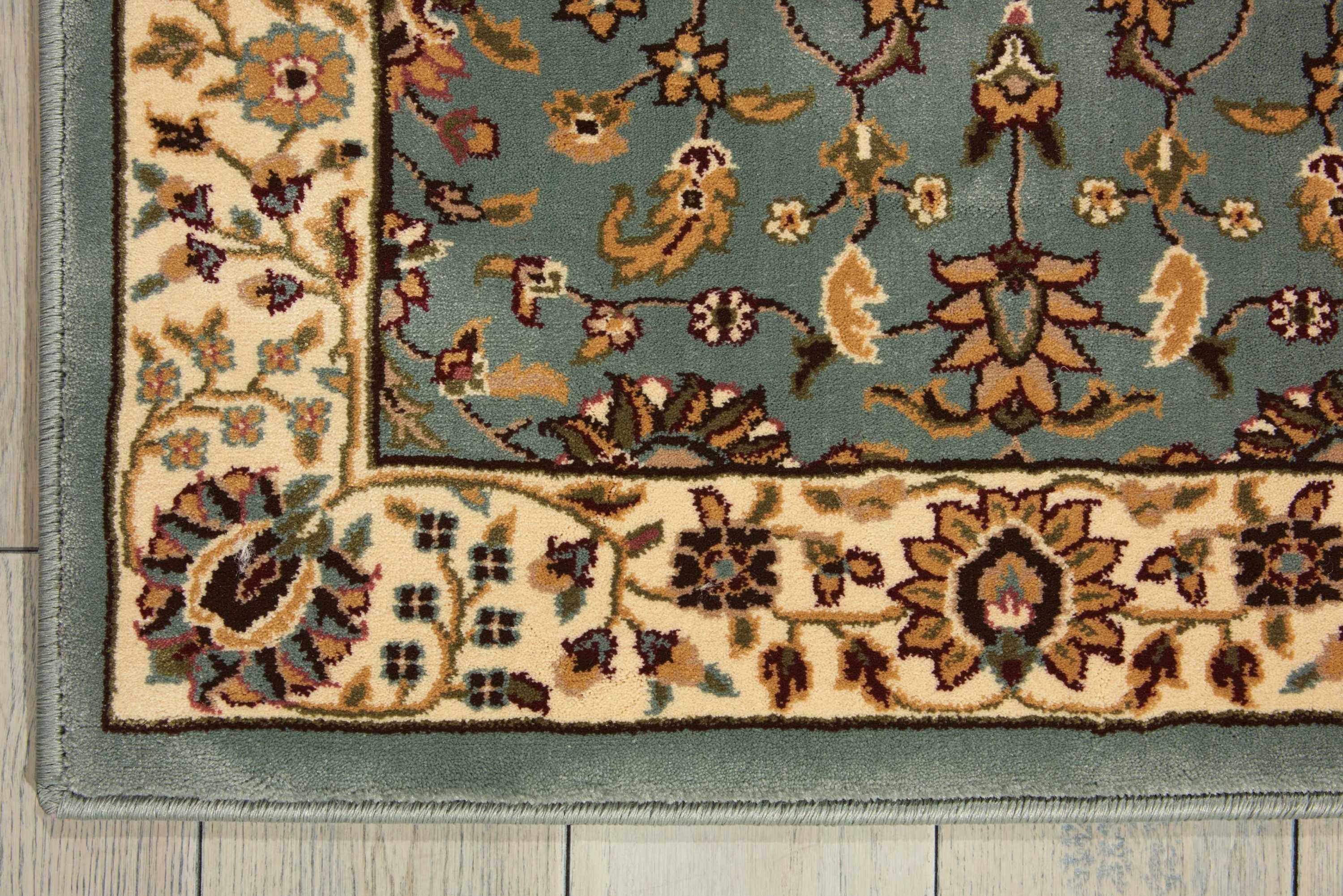 A perfect slate blue creates irresistible beauty as the background for a charming display of ancient Persian floral motifs. Framed by an elegant border in gently contrasting ivory, this special rug feels as silky as it looks. Beautifully detailed with accents in sage and garnet.