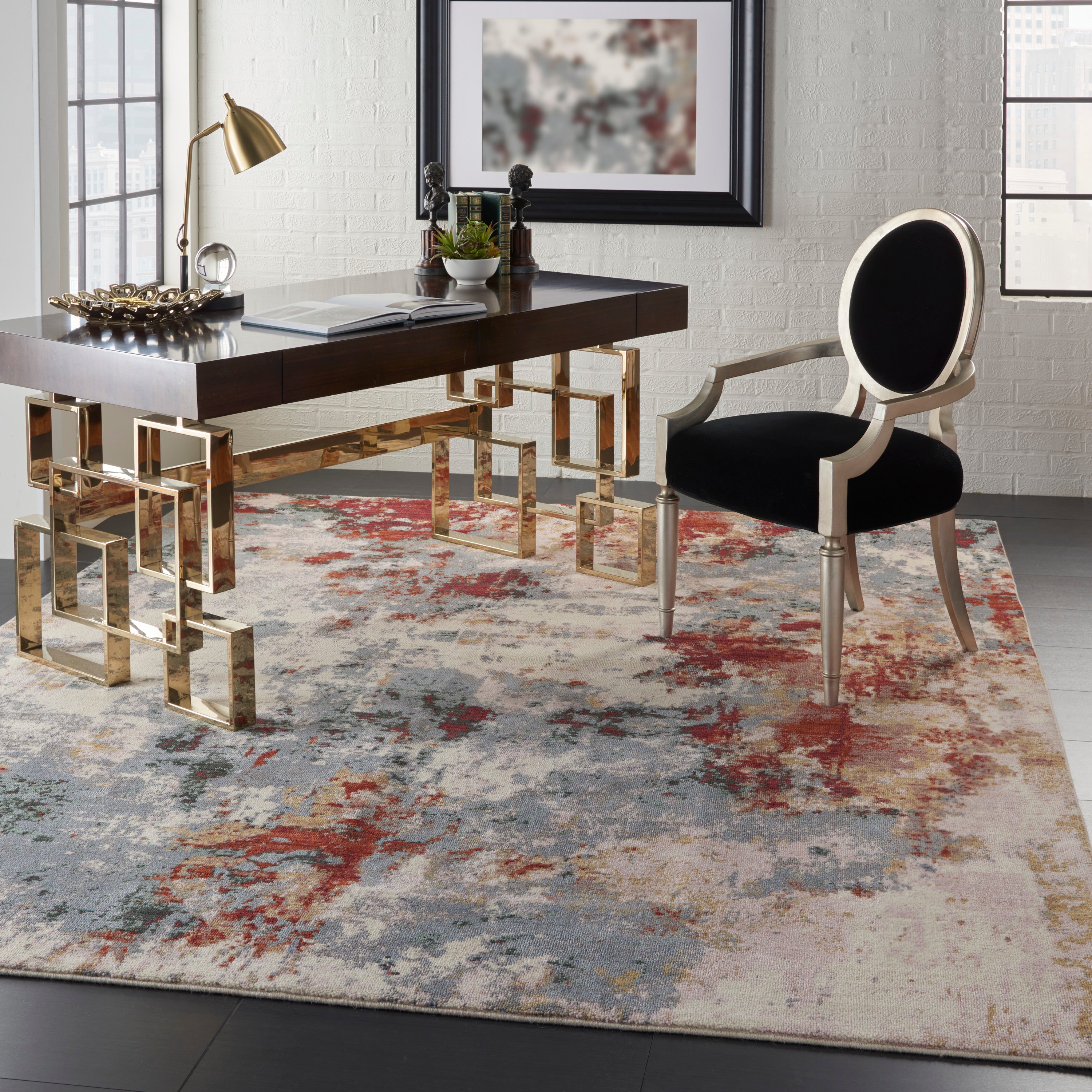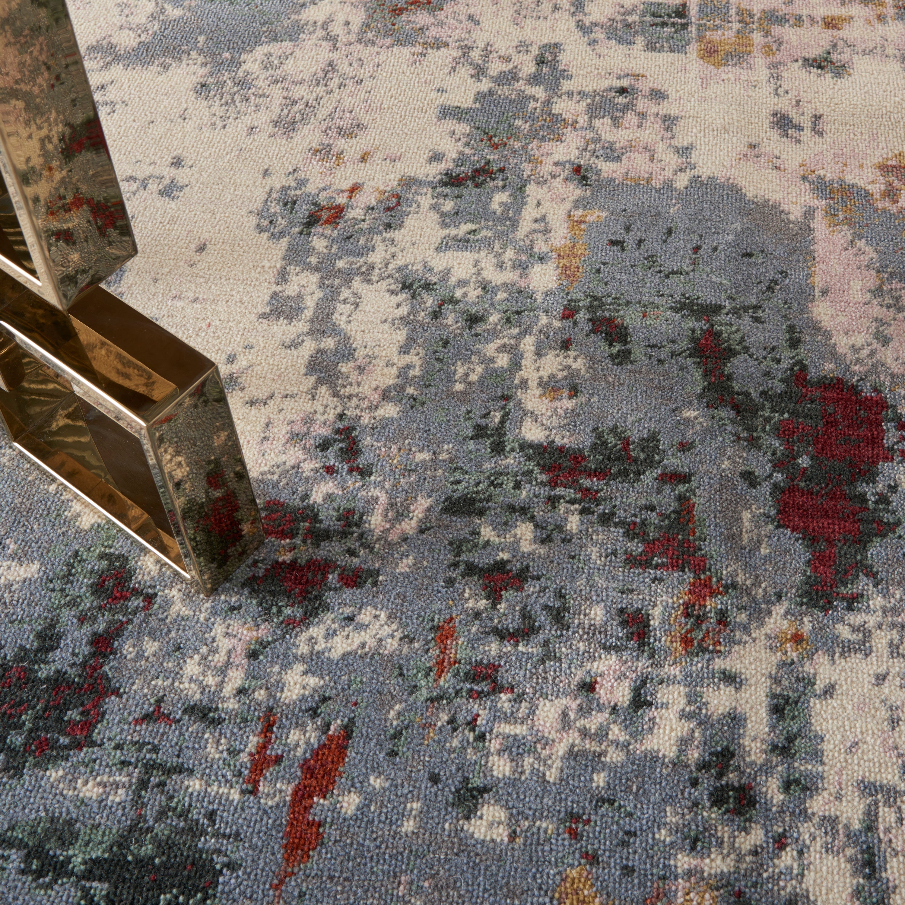 This stunning Artworks rug is the perfect statement of sophistication for any room in the home. Its velvety cut pile is highly textural and richly colored in a modern palette of slate splashed with brick, black, ivory and gold. A luxurious choice in pure New Zealand wool touched with luminous Luxcelle fibers for outstanding quality and durability.