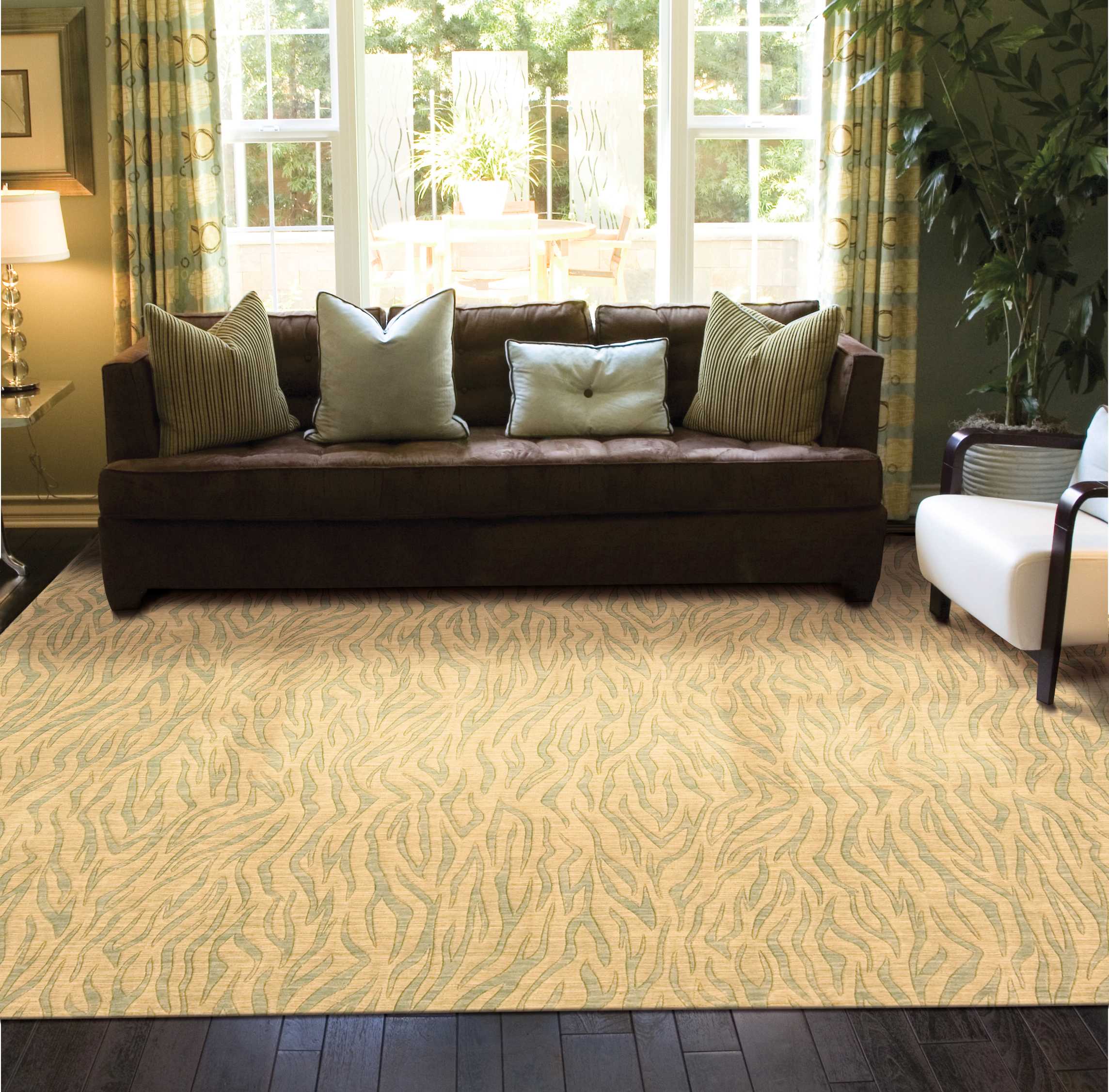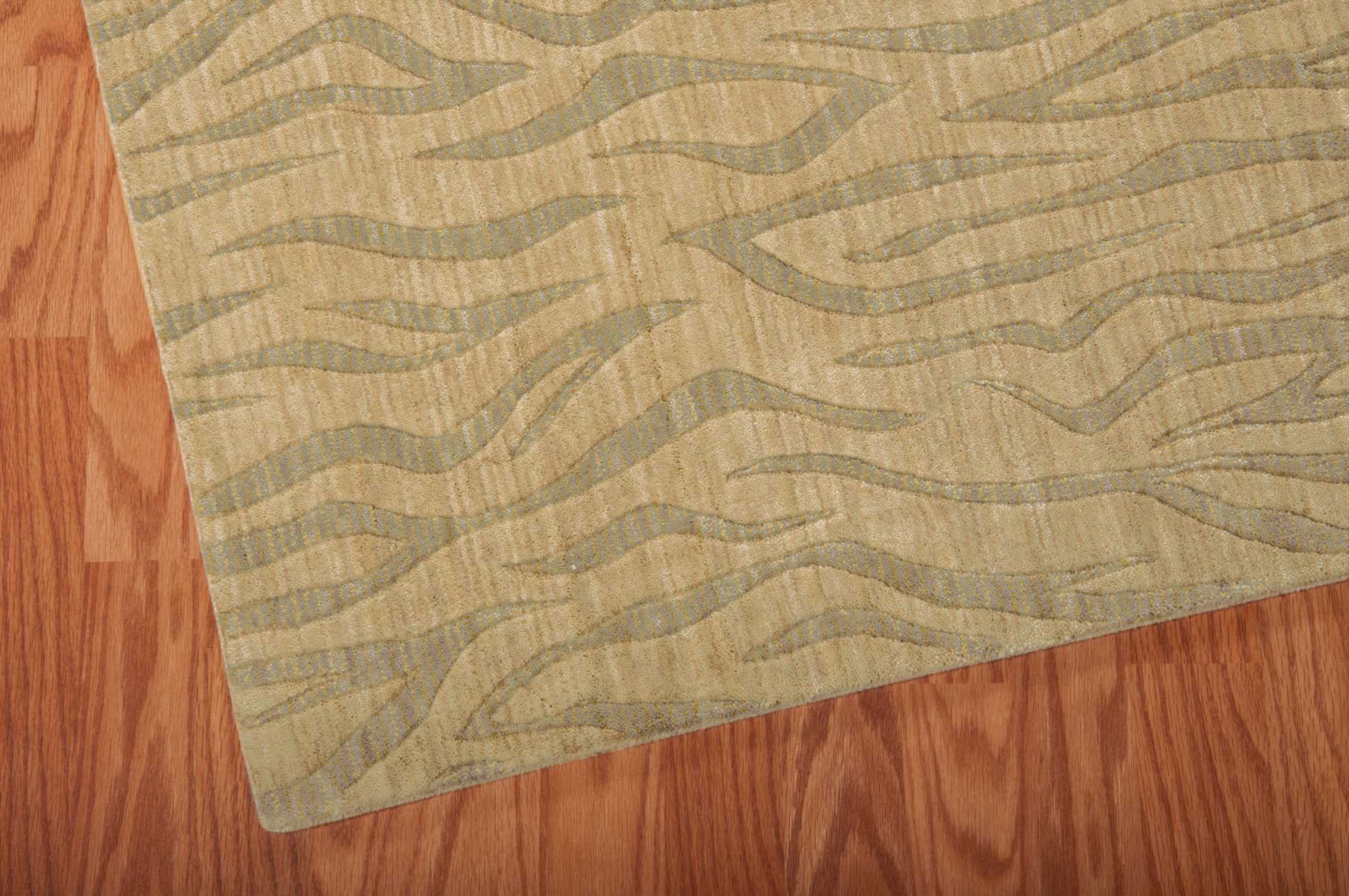An abstract tiger print exudes a sleek sensuality when revealed in incandescent hues of beige and green. With its finely hand-carved details and transfixing texture, this contemporary rug elevates animal magnetism to an art form.