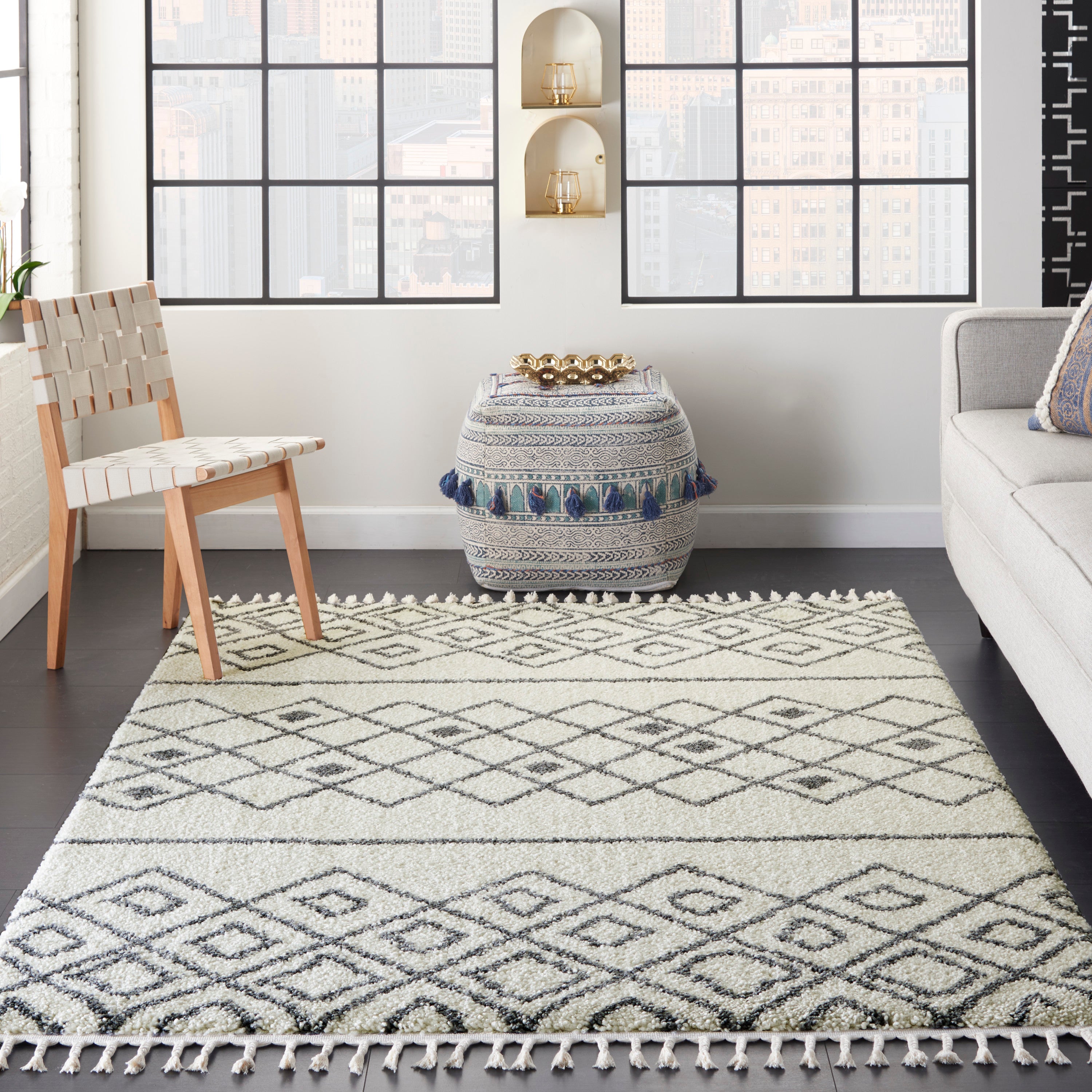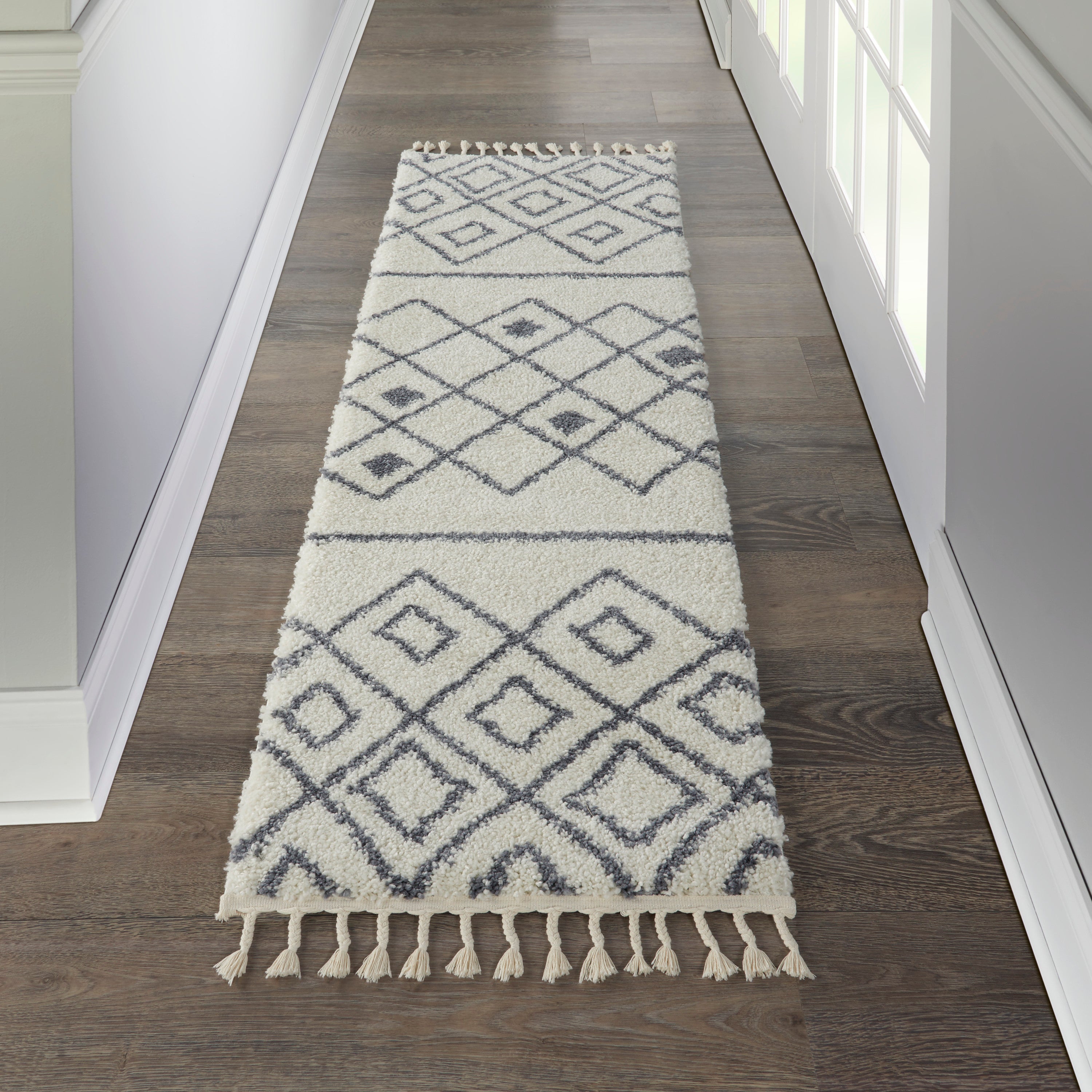 Nourison Diamond Trellis Shag s Ivory/Slate Area Rug