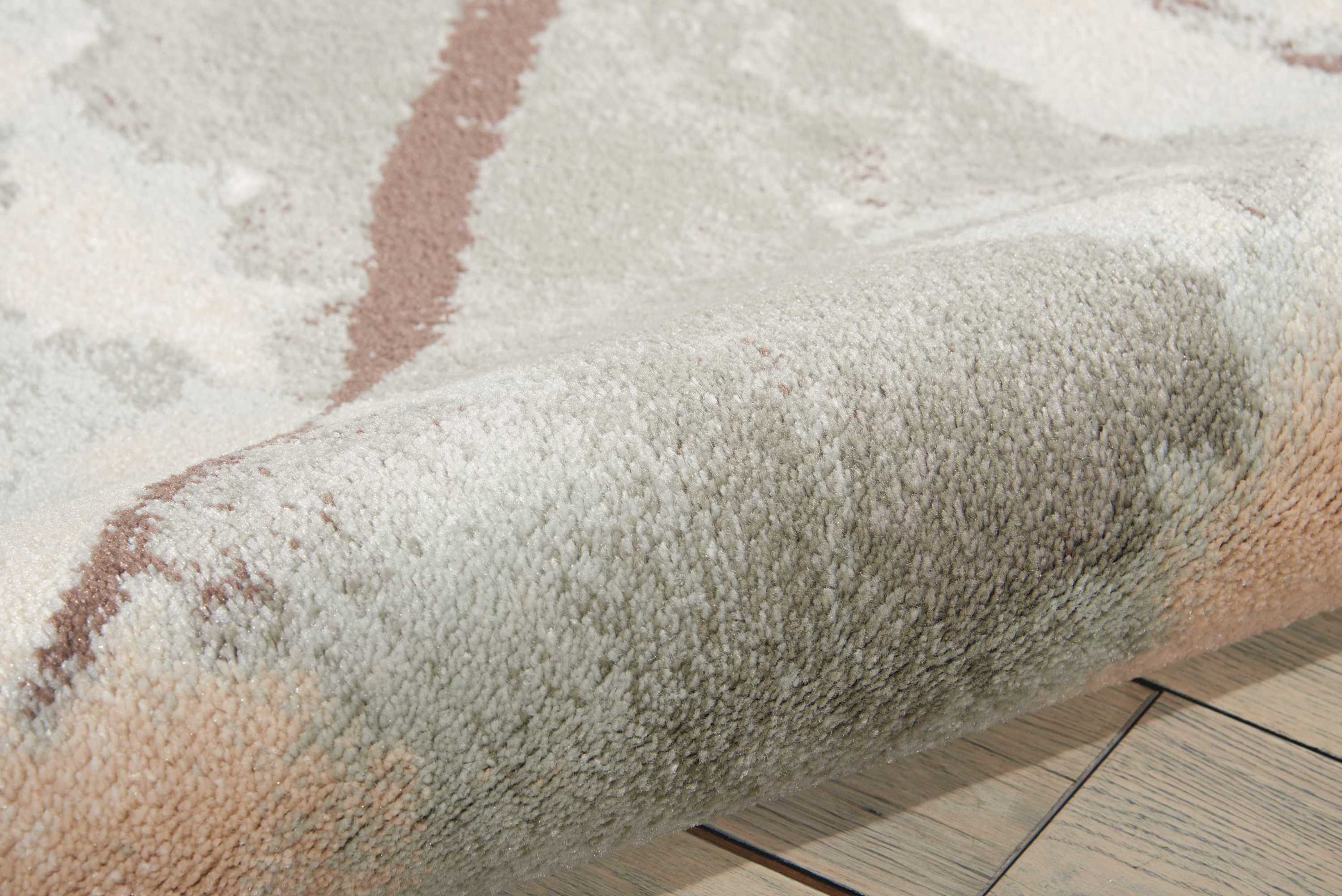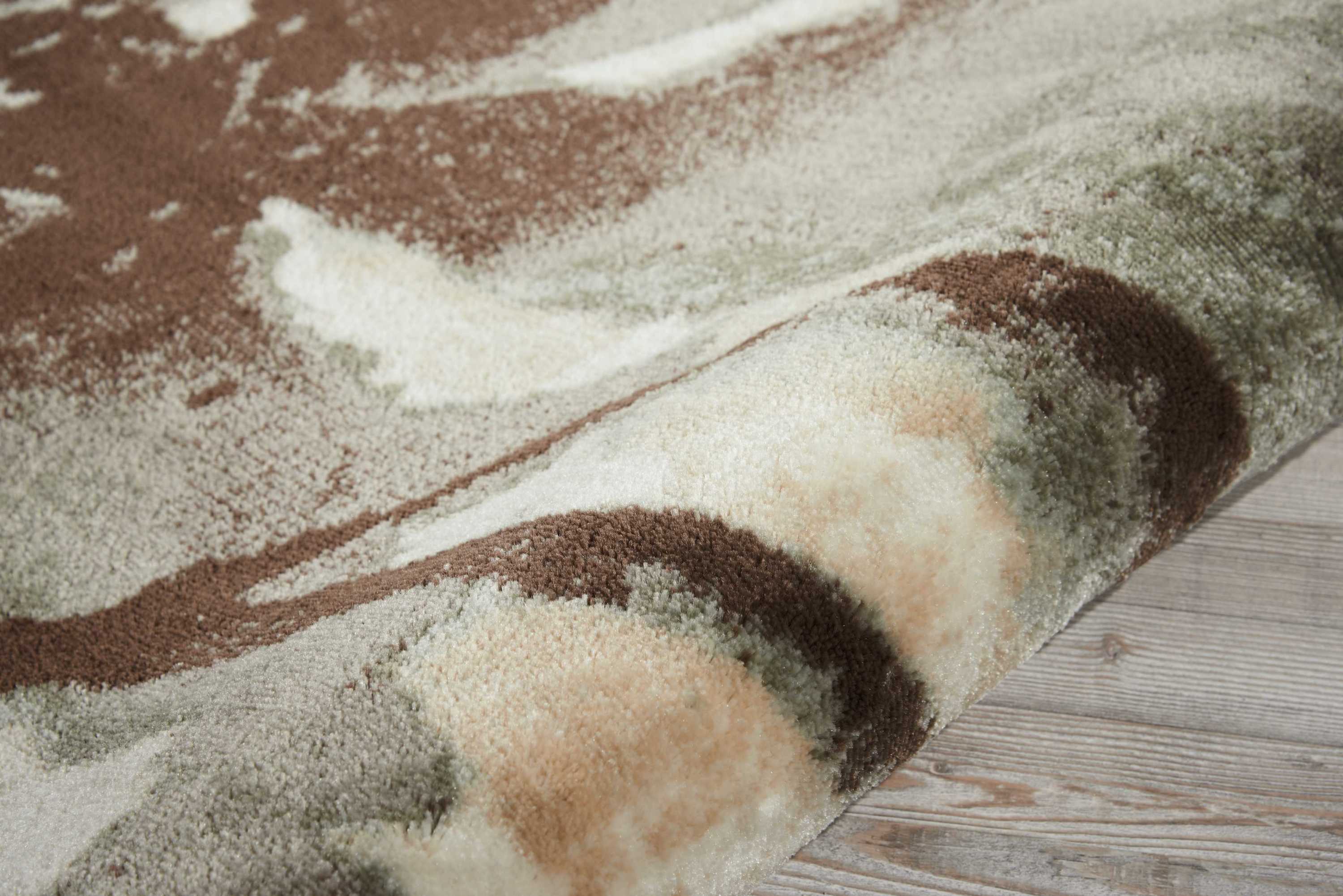 A beautiful over-sized water color lily blossom soothes the senses in serene shades of ivory, soft greys, and mocha. Expertly power loomed from top quality polypropylene yarns for supple texture and lasting beauty.