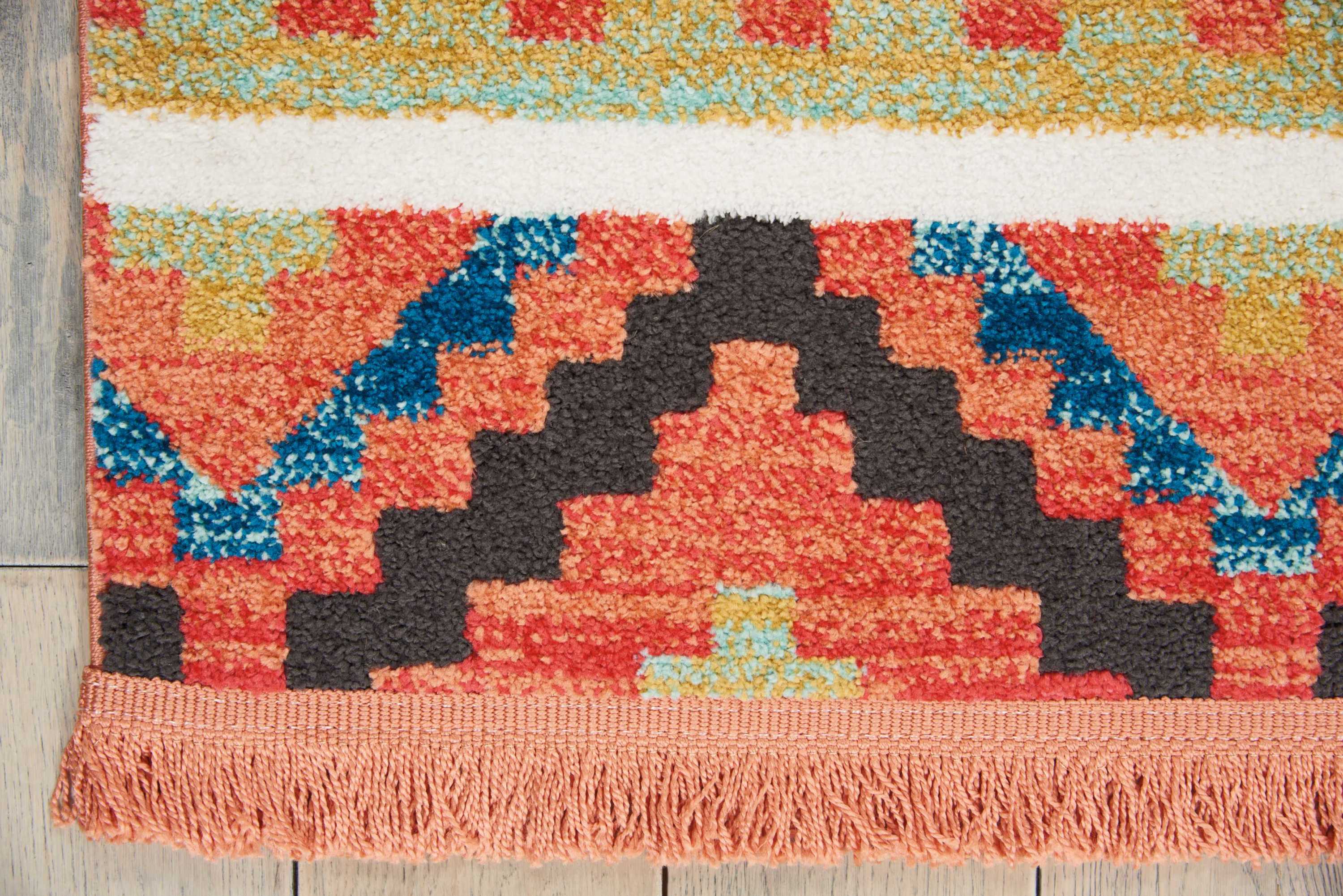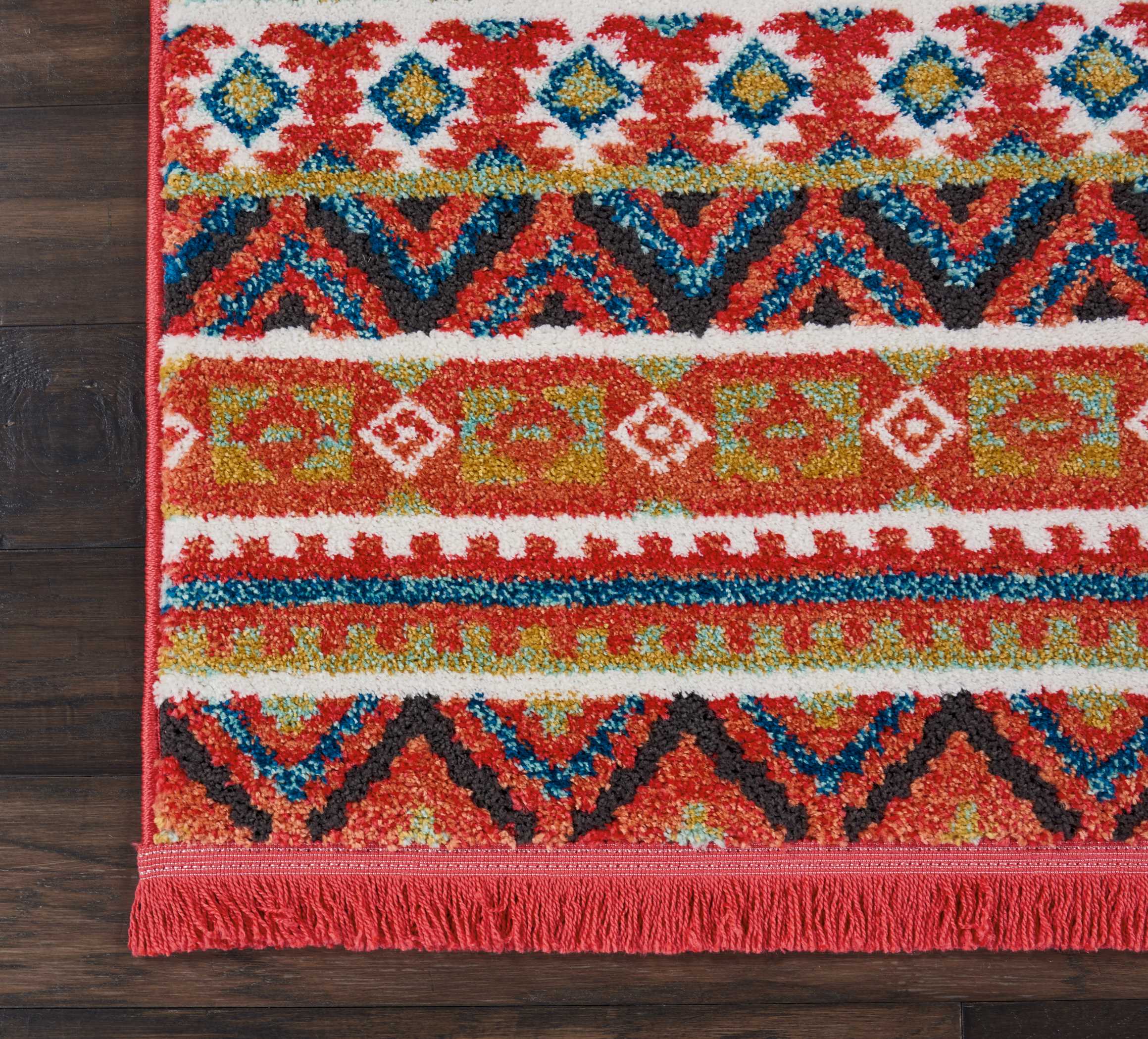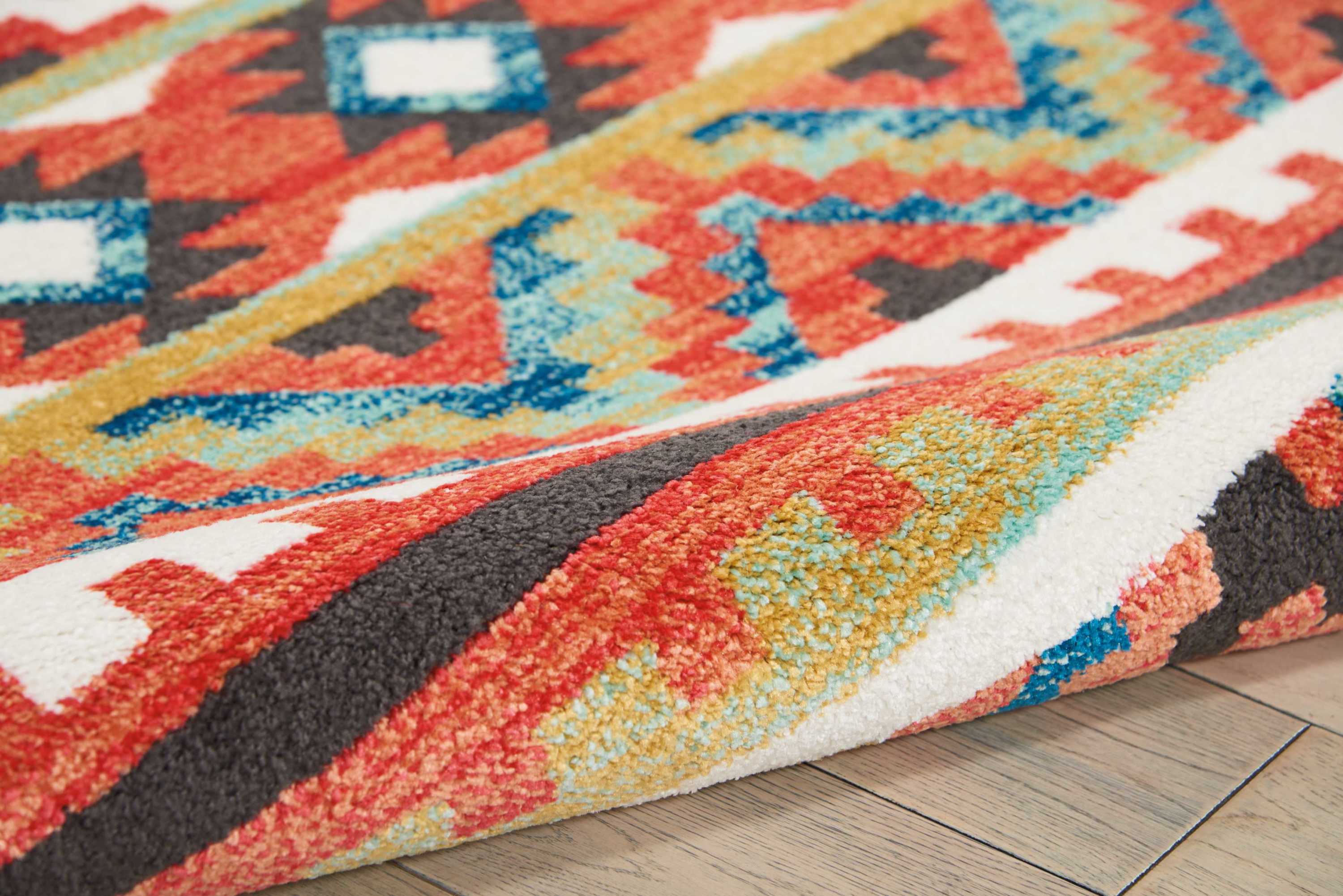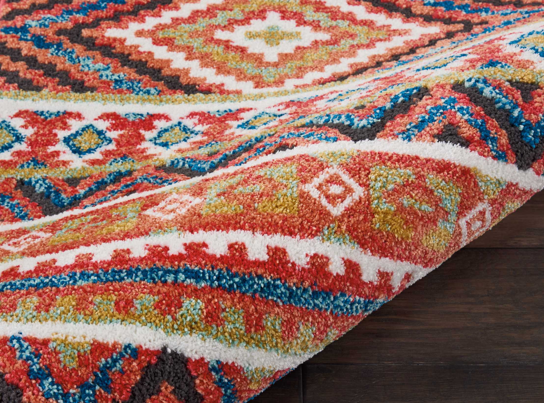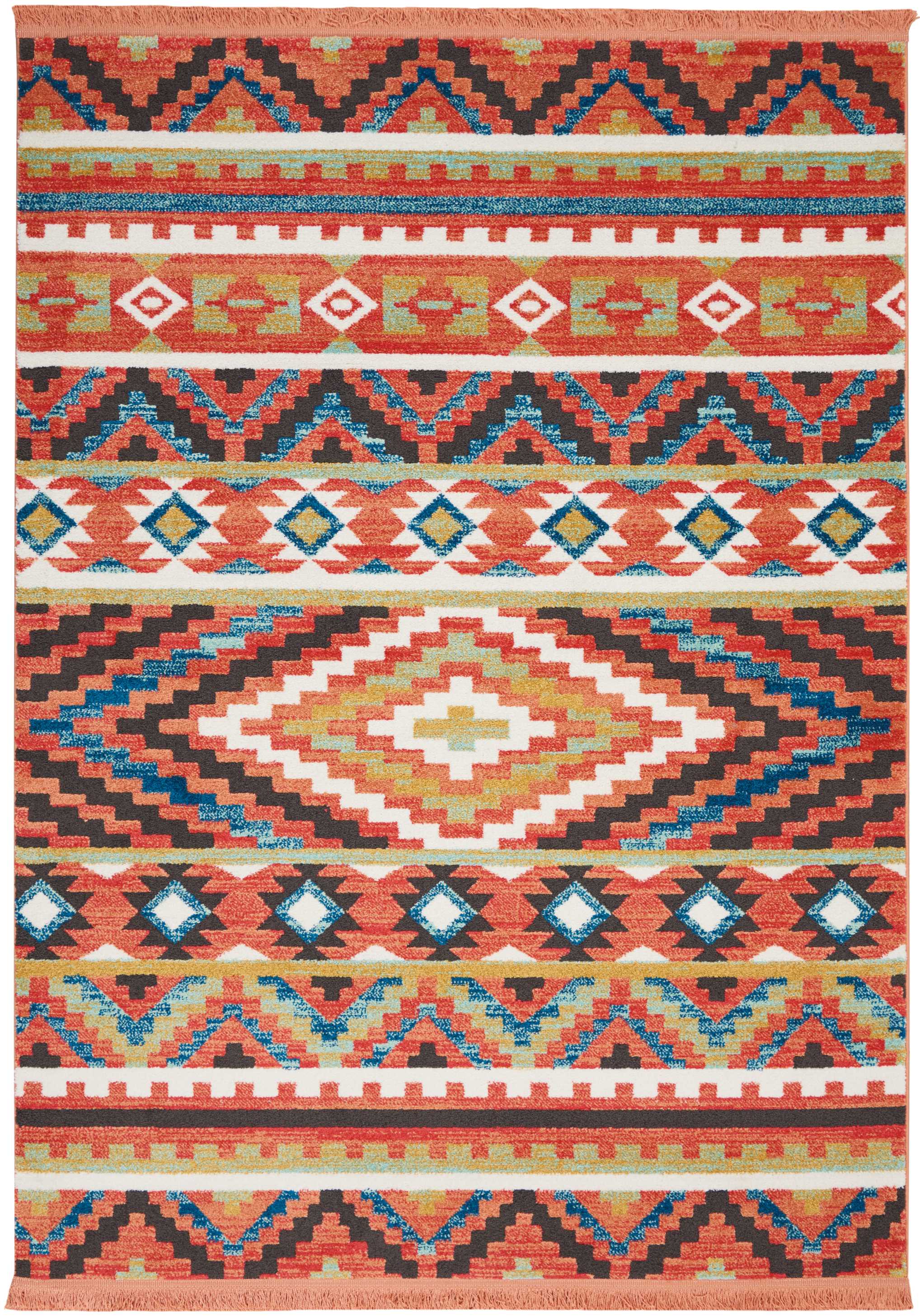 This stunning Tribal Decor Collection rug fairly vibrates with vivacity in an exciting multi-geometric design. Stripes filled with varying symmetrical motifs radiate out from a center medallion diamond for a striking visual effect inspired from traditional Navajo rug design.