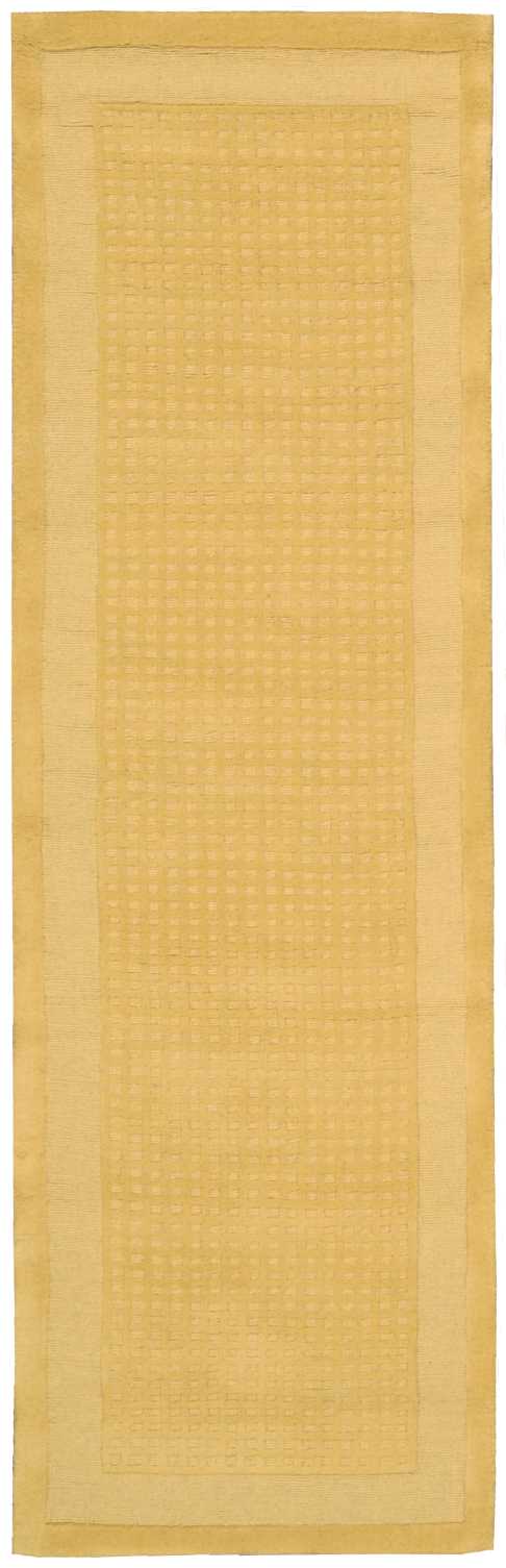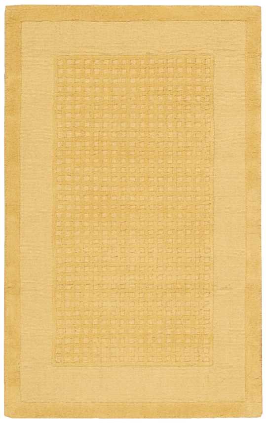 Pastel perfection comes home in this modern classic rug design. A double border of darker and lighter golden yellow hues frame a texturally toned center panel. This perfect expression of elegant simplicity makes your good taste the centerpiece of the room.
