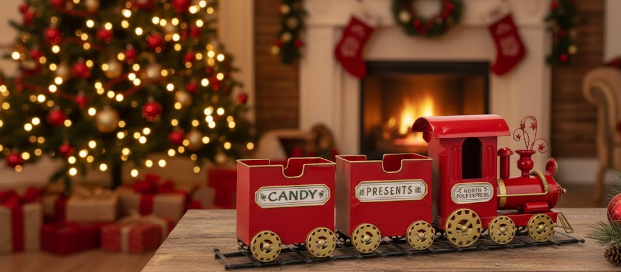 Add a whimsical touch to your holiday home decor with this adorable Train on Track decor. The bold red finish paired with the black and gold accents makes for a great addition to your traditional style of Christmas decor. The quality metal composition is sure to last for seasons to come. Display the piece under your tree or as a statement table display to draw the attention of your guests.