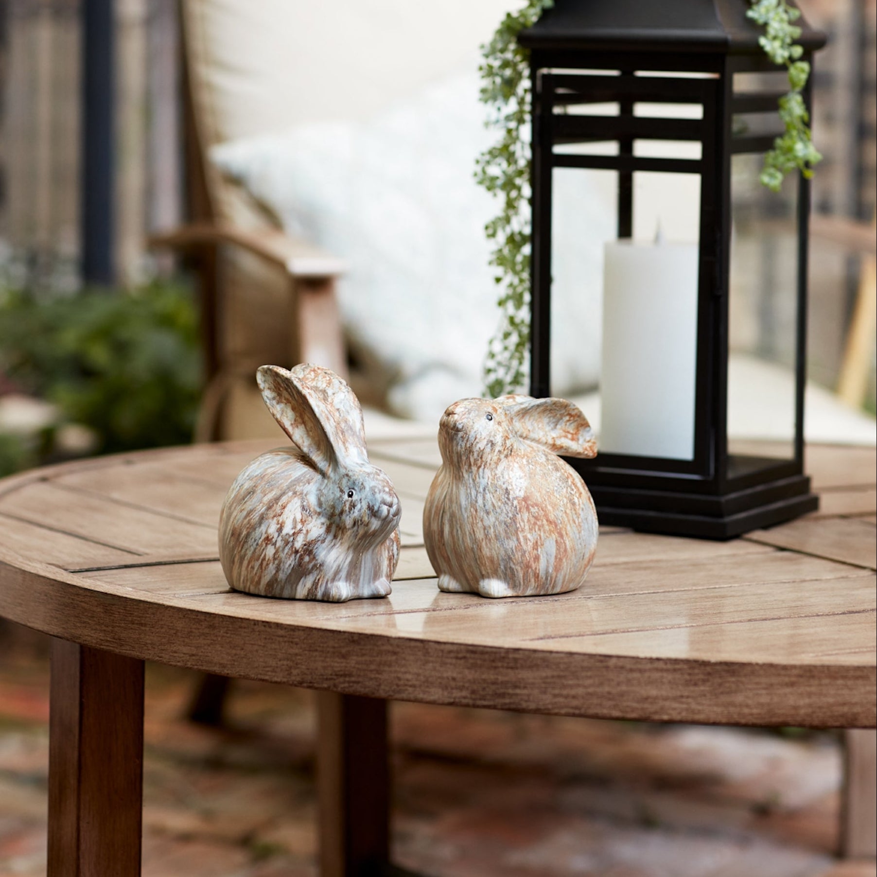 Modern Bunny Rabbit Figurines – Set of 2 Terra Cotta Resin Rabbits, 6"H Marble Finish Indoor/Outdoor Decor by Melrose