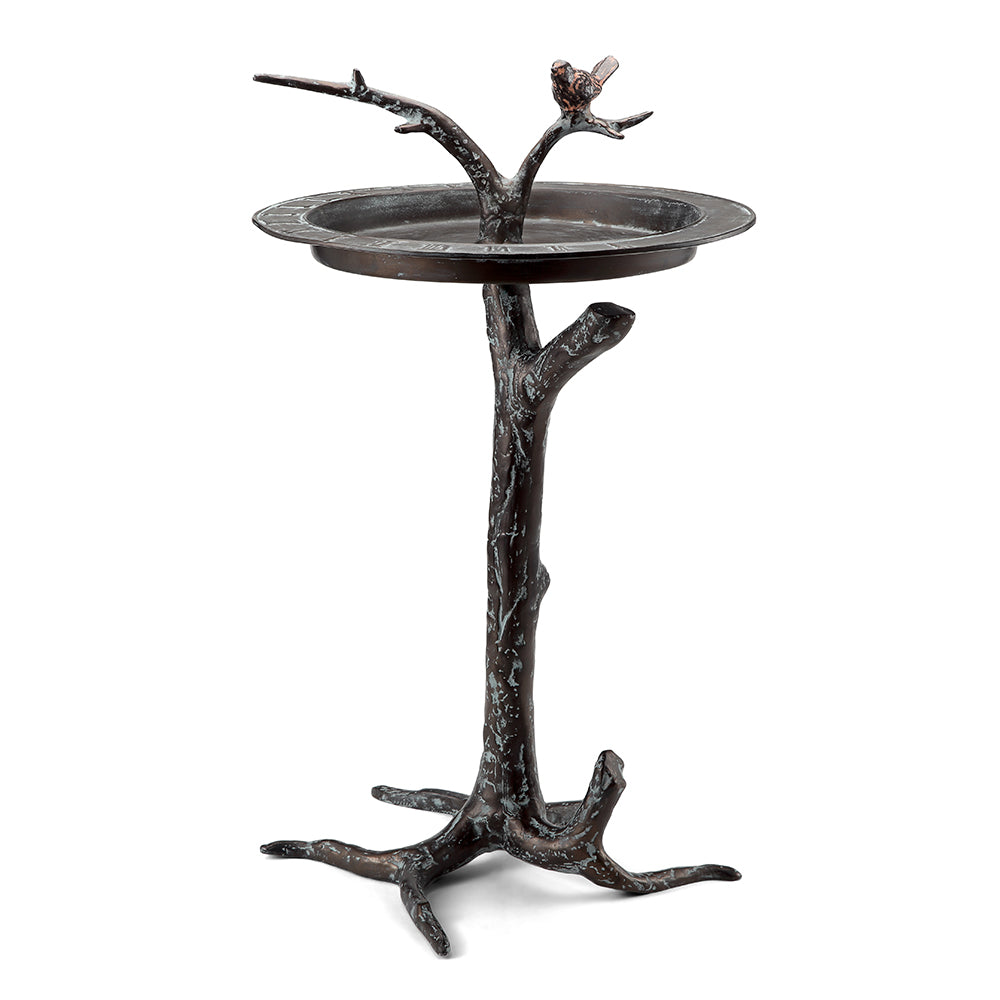 Celebrate nature’s timeless beauty with the SPI Home Bird & Twig Sundial/Birdbath, a dual-purpose garden accent that artfully blends form and function. Standing 26.5 inches tall and 16 inches wide and deep, this sculptural piece features a graceful branch design adorned with a perched bird, supporting a shallow bowl that functions as both a sundial and a birdbath. Crafted in sturdy metal with a weathered bronze finish, it weighs 6.5 lbs—lightweight enough for repositioning yet stable for outdoor display. Ideal for garden paths, patios, or nature-themed landscapes, this piece invites songbirds and sunlight alike, creating a peaceful focal point filled with rustic charm.