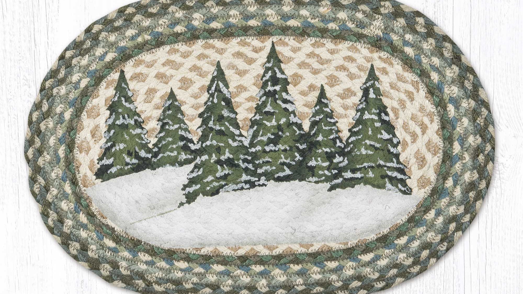 Earth Rugs Christmas Tree Oval Placemat – Holiday Village Design 13"x19"