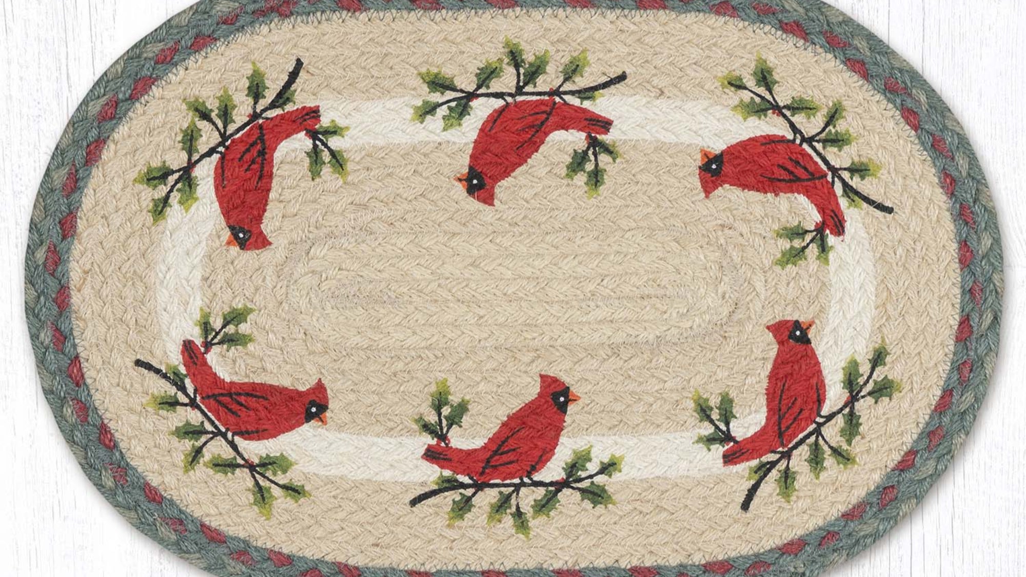 Earth Rugs Festive Cardinal Oval Placemat 13"x19" Farmhouse Holiday Tabletop