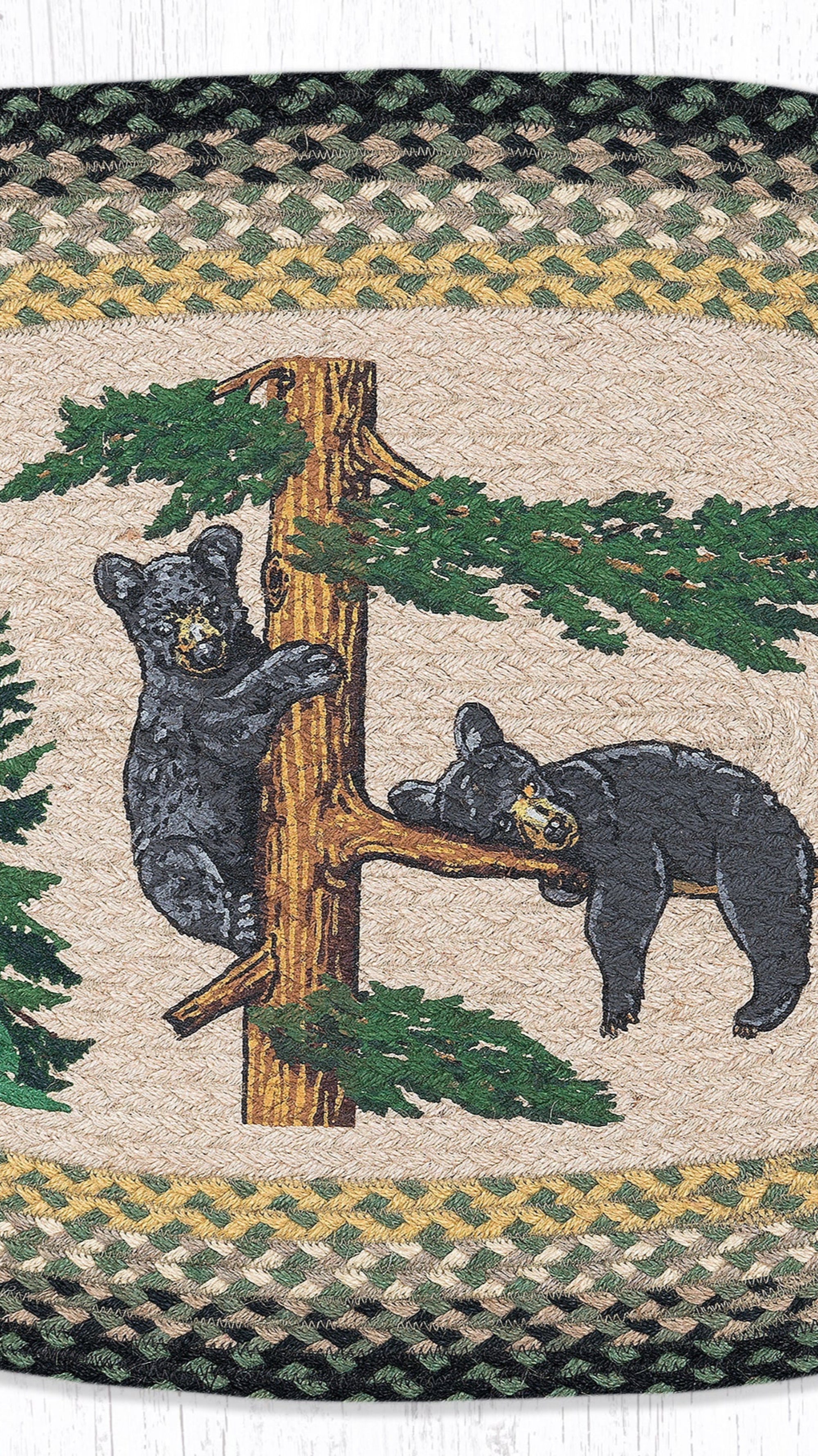 SKU - ER65-116BCHandcrafted Bear Cubs Oval Patch Tread – 20"x30" Nature-Inspired Rug