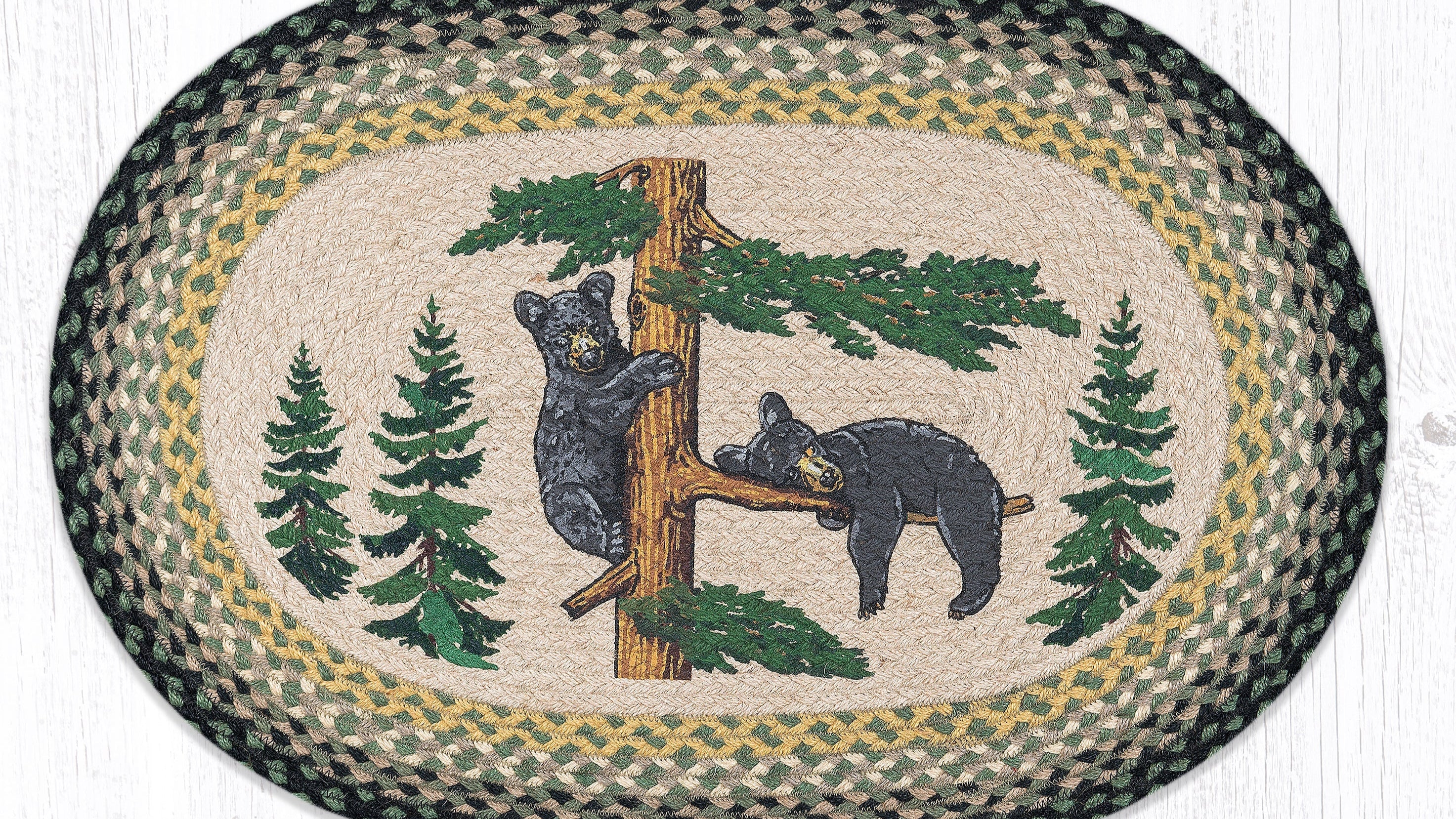 Earth Rugs Handcrafted Bear Cubs Oval Patch Tread – 20"x30" Nature-Inspired Rug