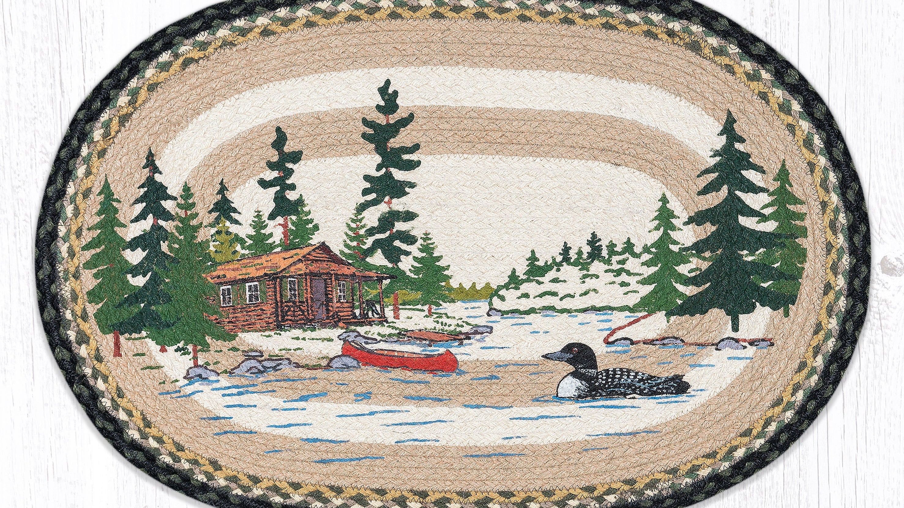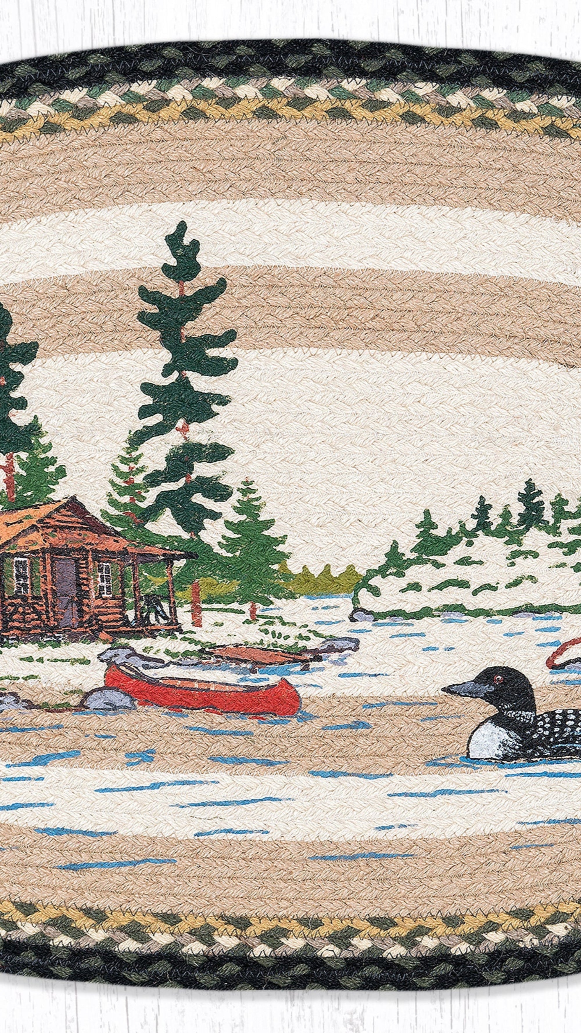 Earth Rugs Loon on Lake Oval Jute Tread – 20"x30", Handmade Wildlife-Inspired Rug