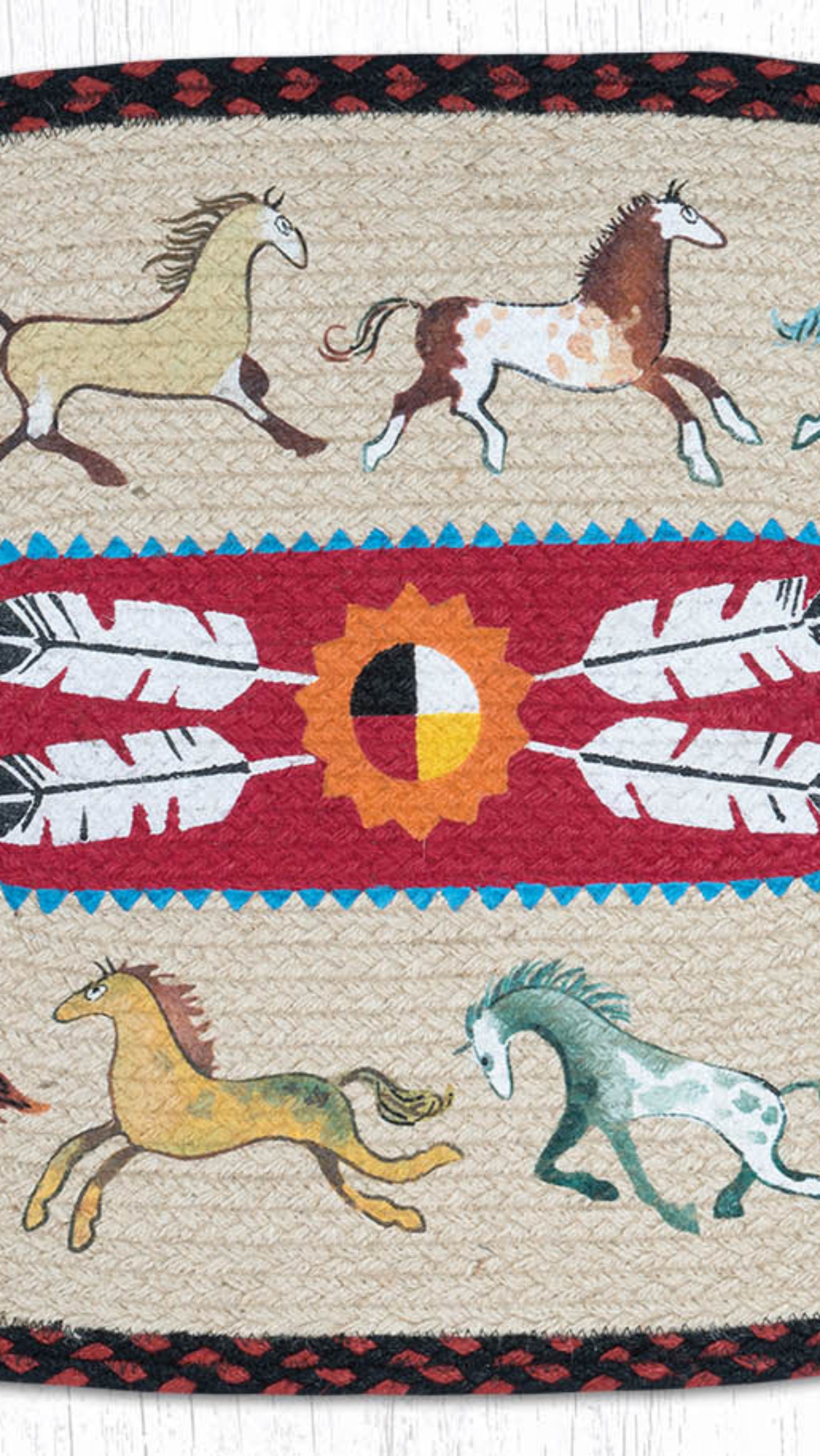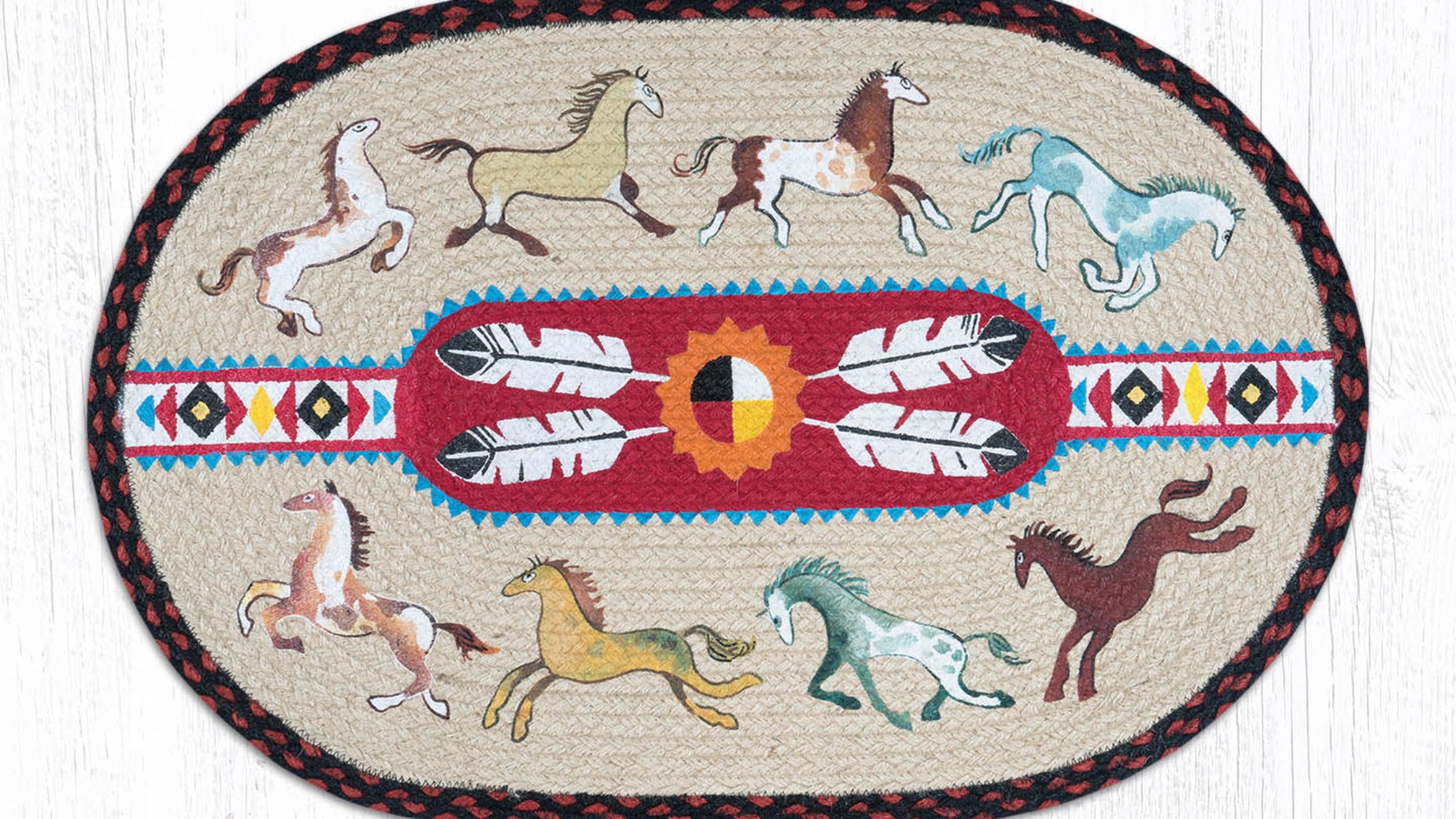 SKU - ER65-019NHNative Horses Oval Patch Tread Rug – 20"x30" Rustic Lodge Decor